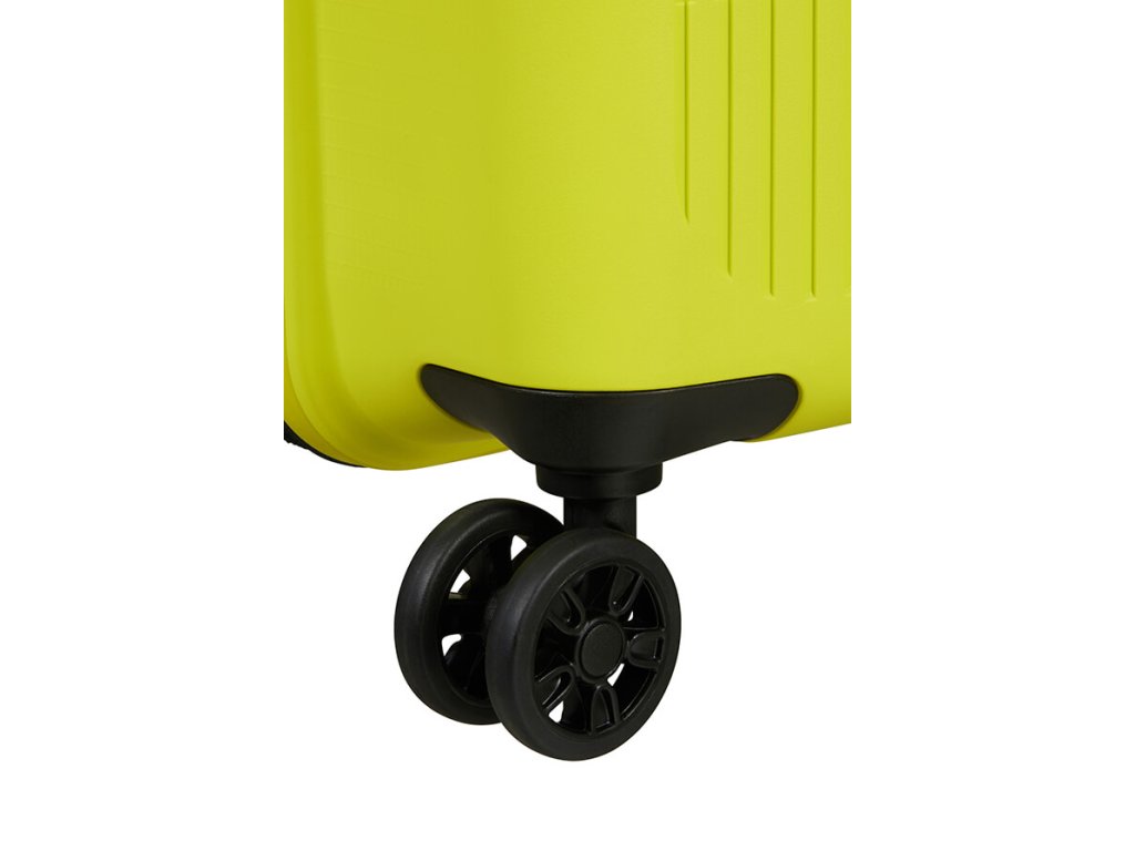 Cestovný kufor na kolieskach AMERICAN TOURISTER SPINNER 55 EXP z kolekcie AEROSTEP je rozdelený deliacou prepážkou na zips s vreckom pre väčšie pohodlie a organizáciu na dve časti. V oboch je krížové upínanie pre dobrú fixáciu odevov. Je tu tiež jedno menšie vrecko na zips. Kufor je opatrený nastaviteľnou vysúvacou rukoväťou, ručným madlom a štyrmi dvojitými kolieskami pre všesmerný pojazd. Uzatvára sa zipsom, ktorý uzamkne integrovaný zámok TSA. Pre dostatok miesta je kufor rozšíriteľný .