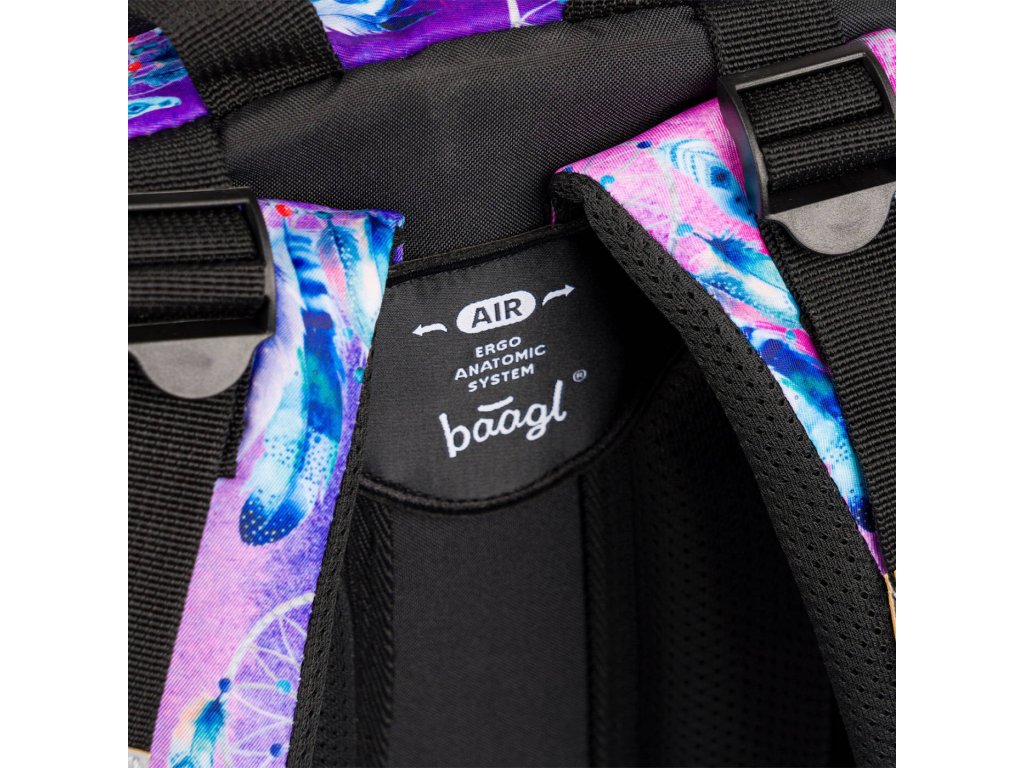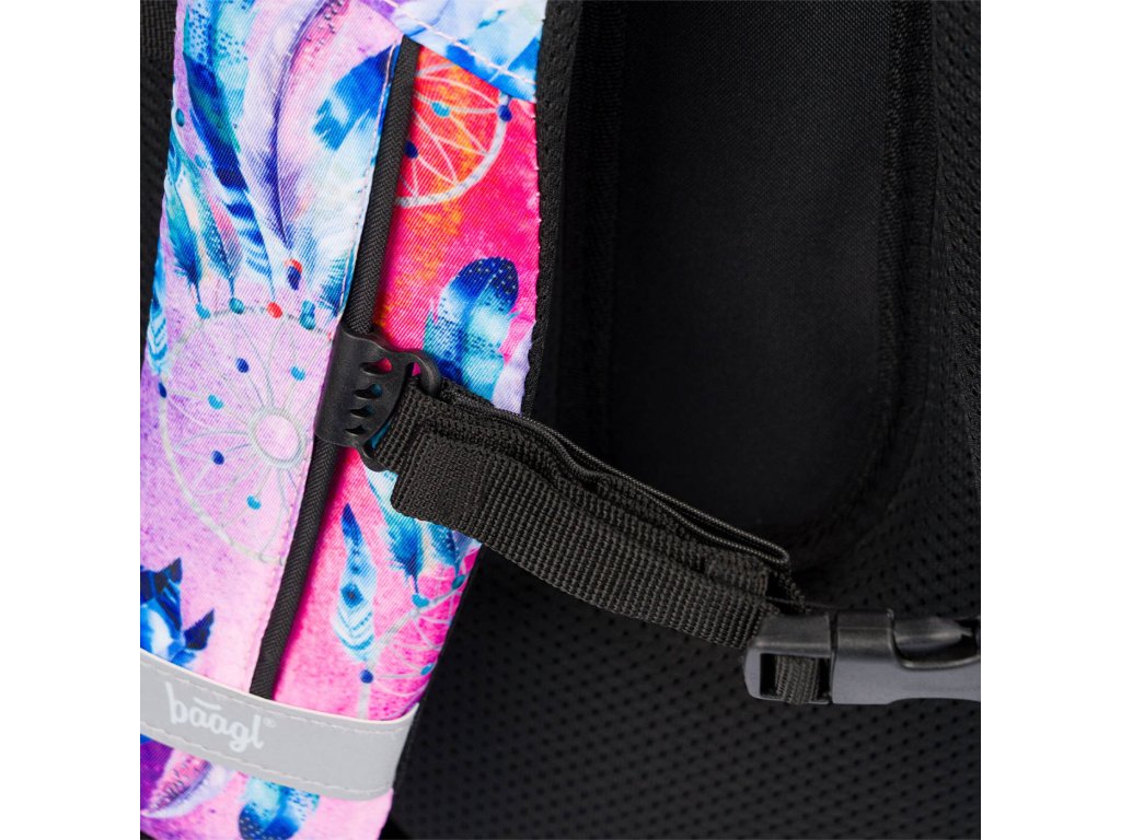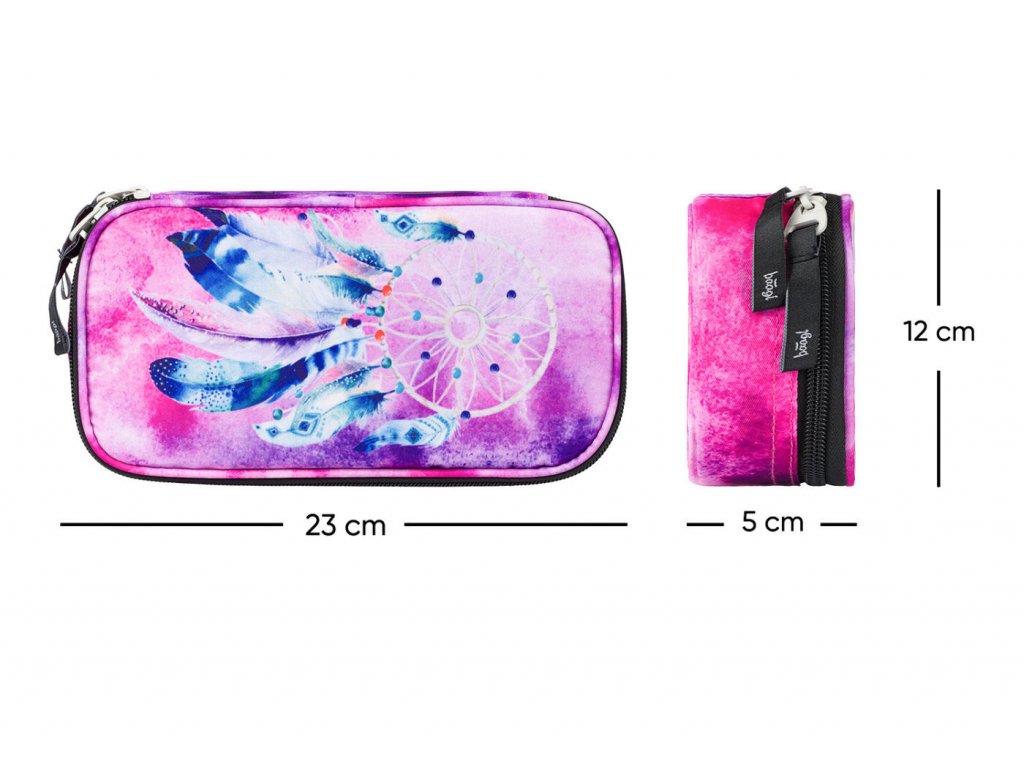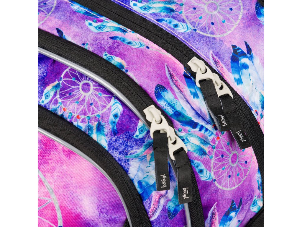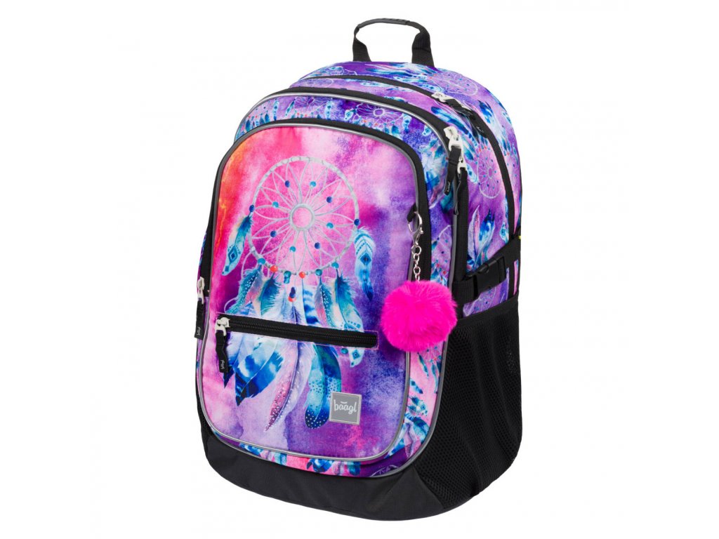 Dievčenská školská súprava českej značky Baagl série Core Lapač snov vo fialovej farbe je vhodná od 3. triedy ZŠ. Tento set obsahuje batoh, vrecko na obuv a praktický peračník.