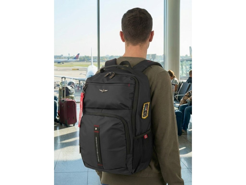 Mestský elegantno-športový batoh od prestížnej značky Aeronautica Militare série Patch v obľúbenej čiernej farbe. Batoh Aeronautica Militare Patch je presne ten typ batohu, ktorý si vezmeš ráno a neriešiš ho celý deň. Drží tvar, dobre sa nosí a má dosť priestoru na všetko, čo bežne nosíš - do práce, do mesta aj na kratšie cestovanie. Hlavná komora pojme notebook, dokumenty aj osobné veci, predné vrecko je ideálne na drobnosti, ktoré chceš mať po ruke. Po stranách sú sieťované vrecká napríklad na fľašu alebo dáždnik. Batoh nepôsobí zbytočne mohutne, ale objemovo je prekvapivo praktický. Chrbát aj ramenné popruhy sú polstrované, takže sa pohodlne nosia aj keď je plnšia. Materiál je pevný, odolný a dobre drží tvar. Typické nášivky a detaily Aeronautica Militare dávajú batohu charakter – decentný vojenský štýl.