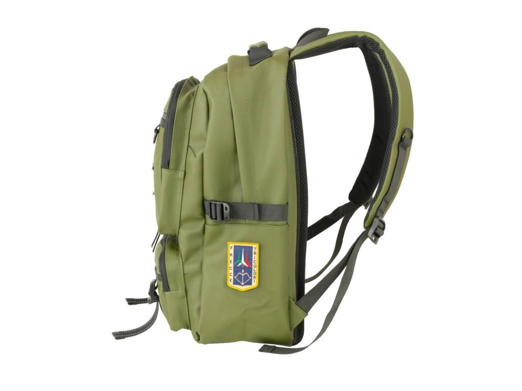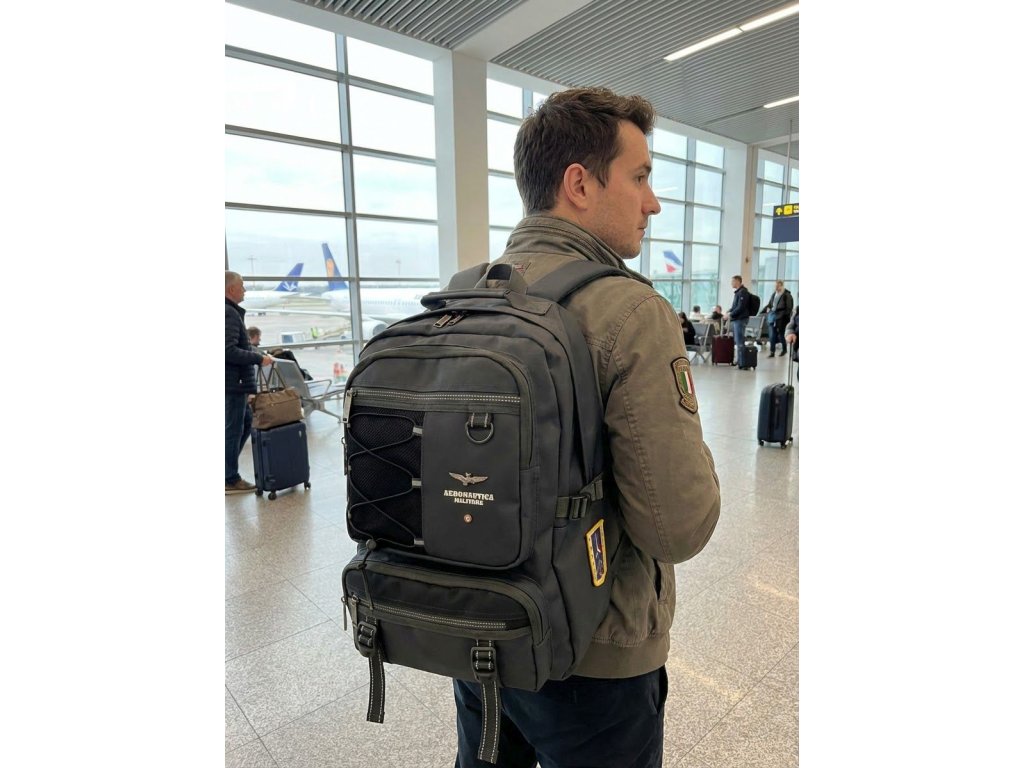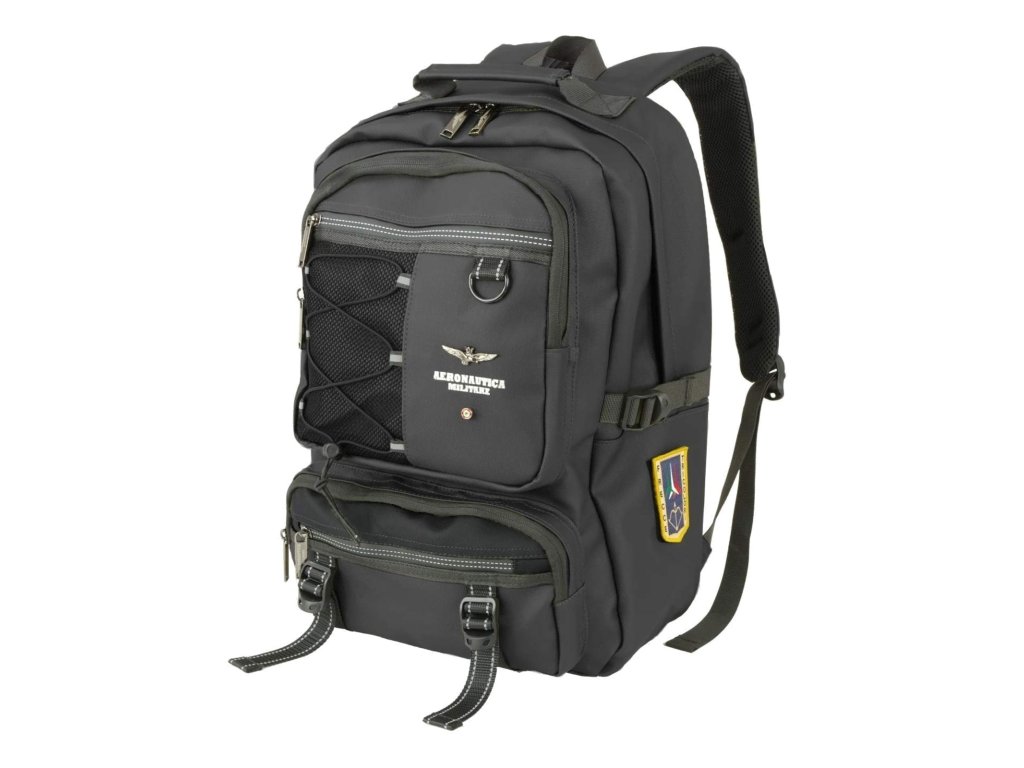 Mestský elegantno-športový batoh od prestížnej značky Aeronautica Militare série Patch v obľúbenej čiernej farbe. Robustný mestský batoh inšpirovaný vojenským štýlom značky Aeronautica Militare, ktorý dáva zmysel ako na každodenné nosenie, tak na cestovanie a zdobí ho ikonický kovový emblém orla a bočná nášivka Frecce Tricolori. Žiadna módna hračka – tento batoh je stavaný na používanie. Hlavná komora ponúka dostatok priestoru pre notebook, dokumenty aj veci na celý deň. Predné vrecká so zipsami a prackami umožňujú prehľadné uloženie drobností. Bočné sťahovacie popruhy pomáhajú udržať obsah stabilný aj pri plnom naložení. Polstrovaný chrbát a nastaviteľné ramenné popruhy zaisťujú pohodlie aj pri dlhšom nosení. Odolný materiál, kvalitné zipsy a výrazné nášivky s leteckou tematikou podčiarkujú charakter batohu – funkčný a pevný.