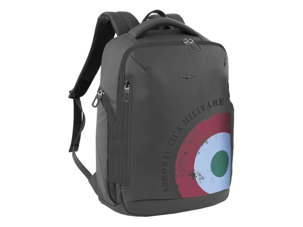 Mestský elegantne - športový batoh od prestížnej značky Aeronautica Militare série Runway v obľúbenej čiernej farbe. Komfortné rozmery zaručujú príjemné každodenné nosenie. Moderný batoh z technického pogumovaného materiálu je perfektnou voľbou pre tých, ktorí hľadajú spojenie funkčnosti, športovej elegancie a talianskeho štýlu. Tento štýlový doplnok stelesňuje jedinečný charakter značky Aeronautica Militare a je navrhnutý tak, aby odolal nepriaznivým poveternostným podmienkam. Na hornej časti nájdete decentné logo značky , zatiaľ čo spodnú časť zdobí výrazná grafika s motívom talianskej trikolóry a nápisom Aeronautica Militare , ktoré podčiarkujú jej exkluzívny vzhľad.