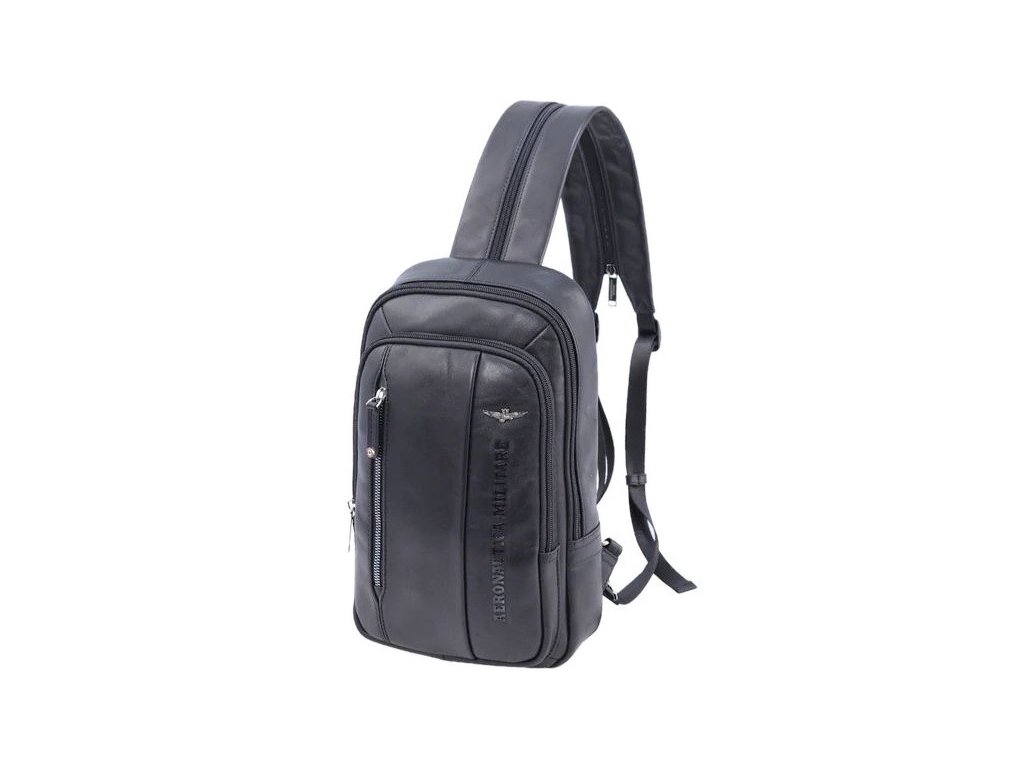Batoh kožený v čiernej farbe talianskej značky Aeronautica Militare série Thunder, vhodný pre manažérov aj mužov, ktorí chcú byť elegantní.