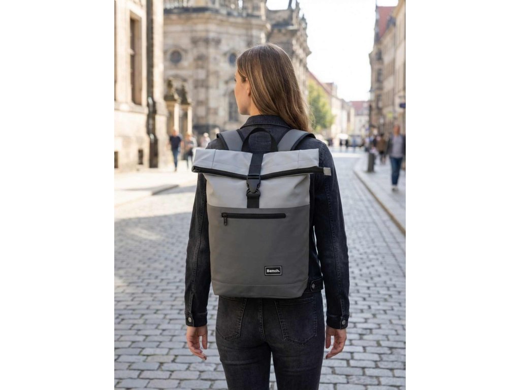 Batoh anglickej značky Bench Hydro roll-top v kombinácii tmavo a svetlo šedej farby , veľmi kvalitná novinka s módnym a praktickým zatváraním nielen pre mladistvých, vhodné pre každý deň aj na cestovanie.