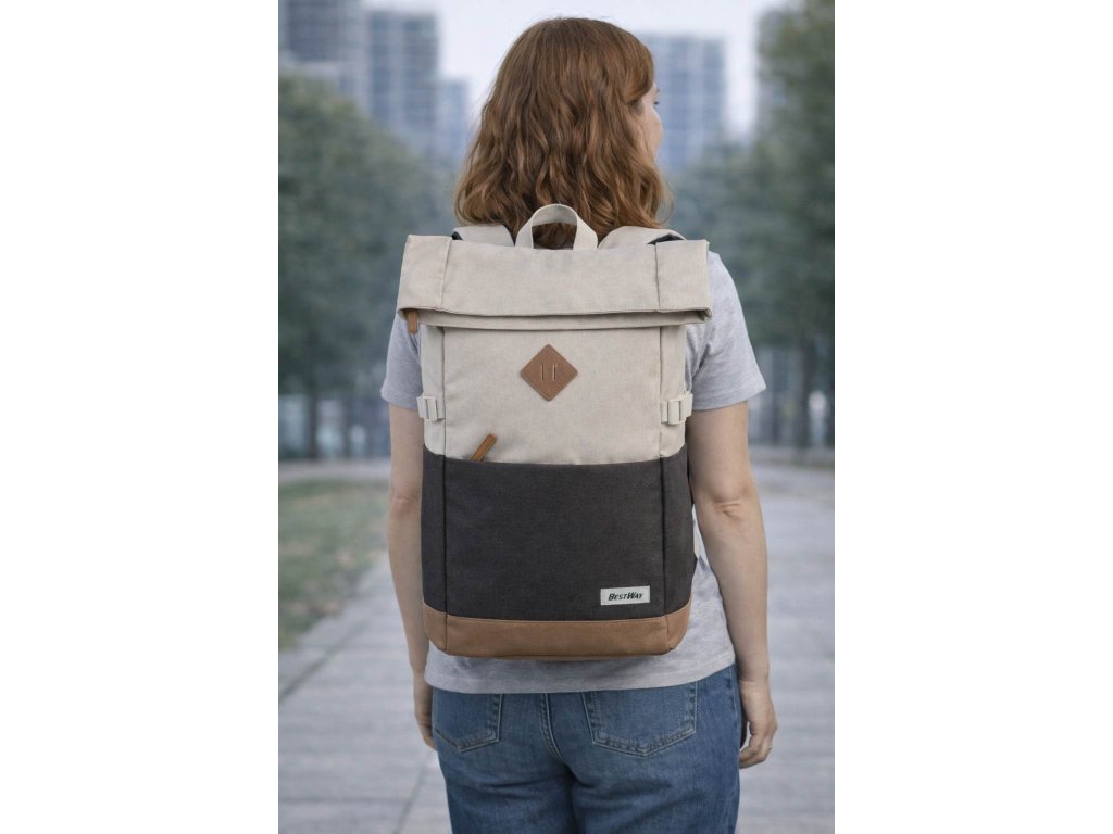 Batoh značky Bestway séria city roll-top v kombinácii béžovej a šedohnedej farby , veľmi kvalitná novinka s módnym a praktickým zatváraním nielen pre mladistvých, vhodné pre každý deň aj na cestovanie.
