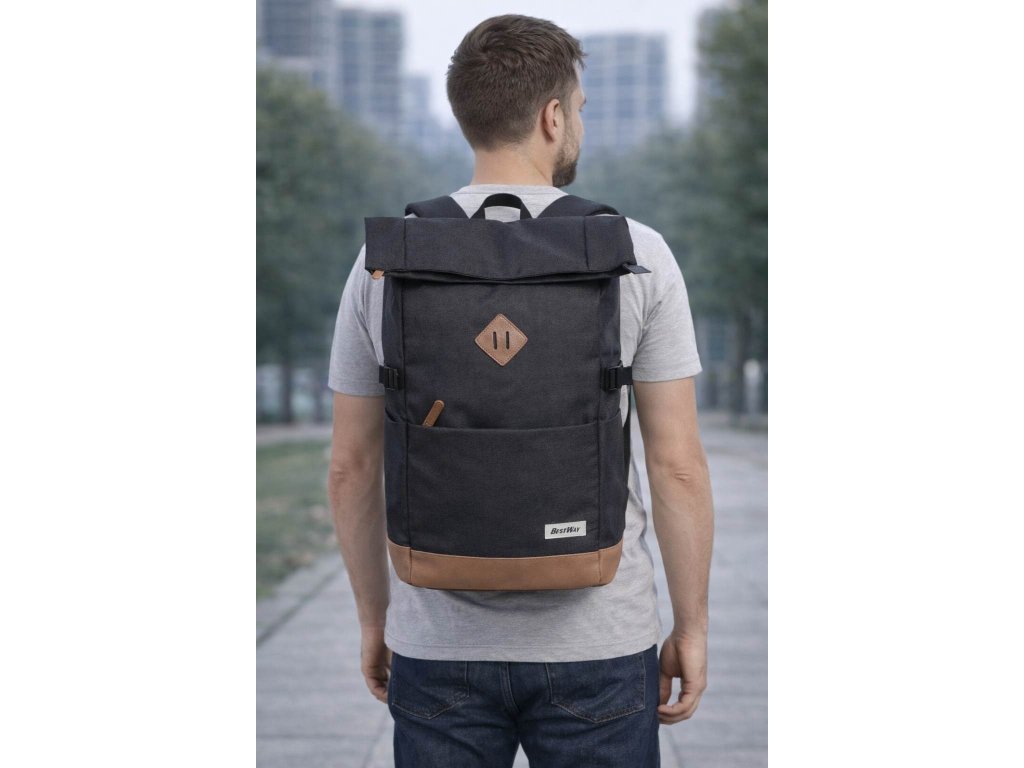 Batoh značky Bestway séria city roll-top v čiernej farbe, veľmi kvalitná novinka s módnym a praktickým zatváraním nielen pre mladistvých, vhodné na každý deň aj na cestovanie.