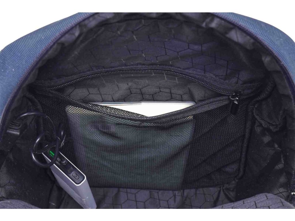 - Hlavné vrecko s dvojcestným zipsom, v ktorom nájdete vrecko na tablet či notebook, vnútorné vrecko na zips
