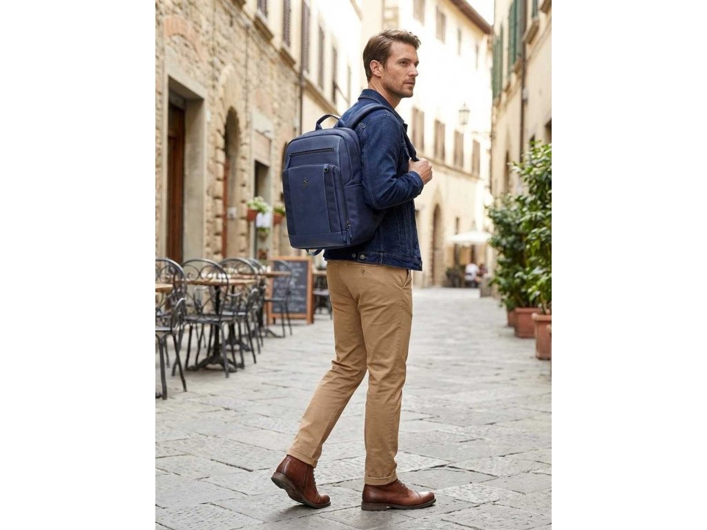 Batoh od talianskej značky Beverly Hills Polo Club série Boston v modrej farbe. Batoh Beverly Hills Polo Club Boston je ideálna voľba na každodenné nosenie do práce, do školy aj na cestovanie. Kombinácia štruktúrovaného materiálu a hladkých detailov pôsobí moderne a elegantne, zatiaľ čo decentné logo BHPC dodáva batohu prémiový charakter. Hlavná komora na zips ponúka dostatok priestoru na dokumenty, pracovné veci aj osobné potreby. Predné vrecká na zips umožňujú rýchly prístup k mobilu, peňaženke alebo kľúčom. Nechýbajú ani bočné vrecká vhodné napríklad na fľašu s vodou. Vďaka polstrovaným ramenným popruhom a spevnenému chrbtovému panelu je nosenie pohodlné aj pri dlhšom zaťažení. Batoh drží tvar, pôsobí kompaktne a pritom ponúka prakticky riešený vnútorný priestor - žiadne zbytočné členenie, ale presne to, čo v reálnom živote využijete.