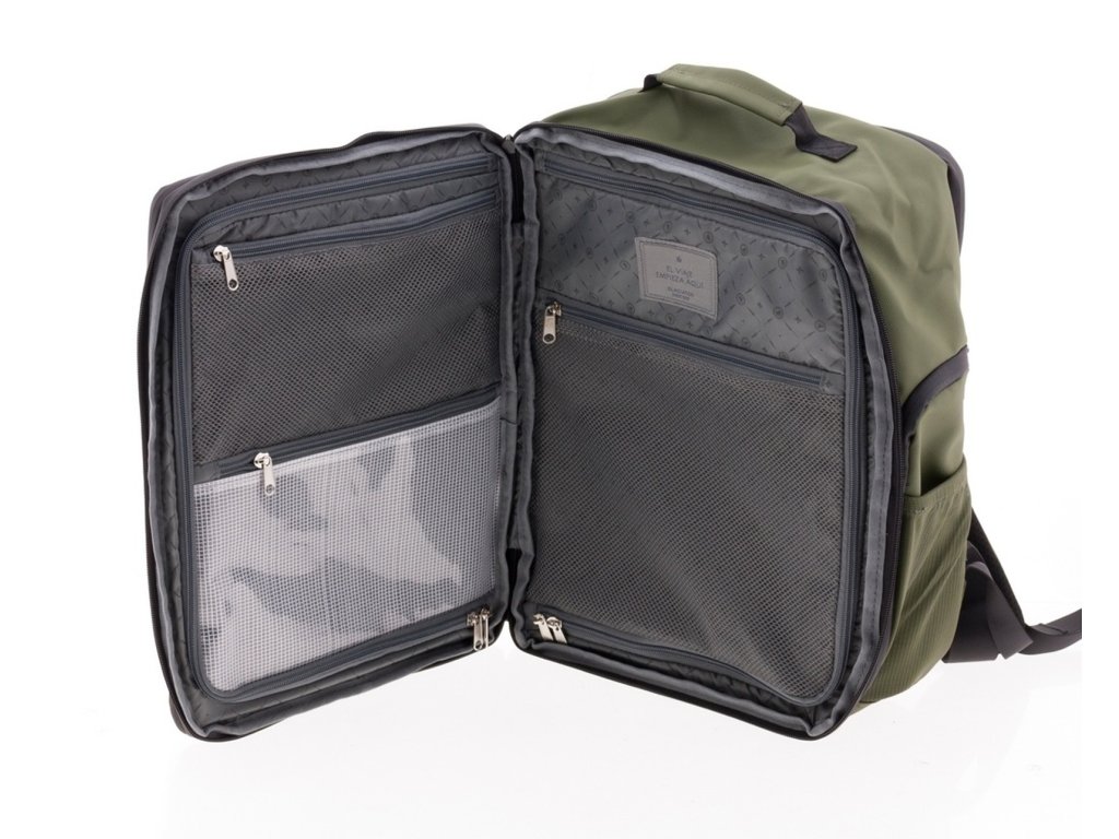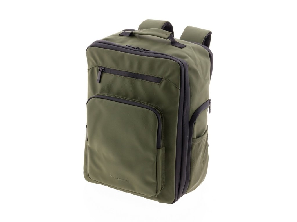 Moderný batoh španielskej značky Gladiator série Flow v zelenej farbe . Tento batoh v yhovuje parametrom nízkonákladovej leteckej spoločnosti Ryanair, Wizzair, Vueling, Volotea a Transavia.