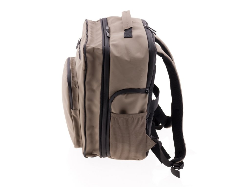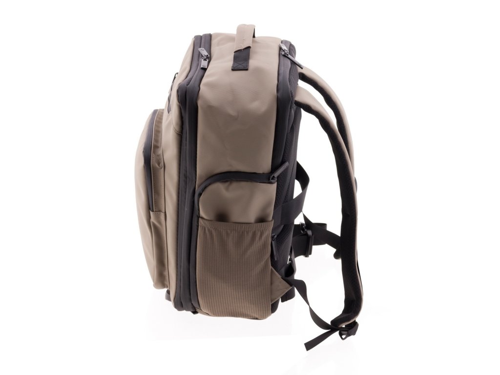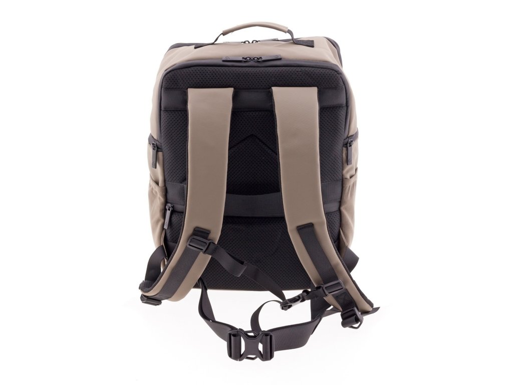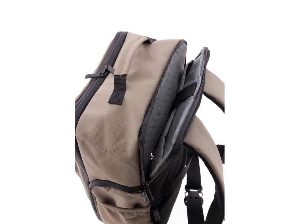 Moderný batoh španielskej značky Gladiator série Flow v béžovej farbe . Tento batoh v yhovuje parametrom nízkonákladovej leteckej spoločnosti Ryanair, Wizzair, Vueling, Volotea a Transavia.