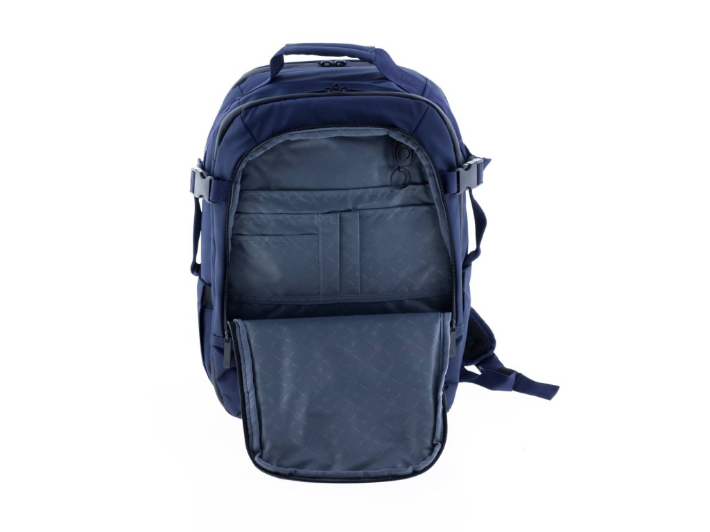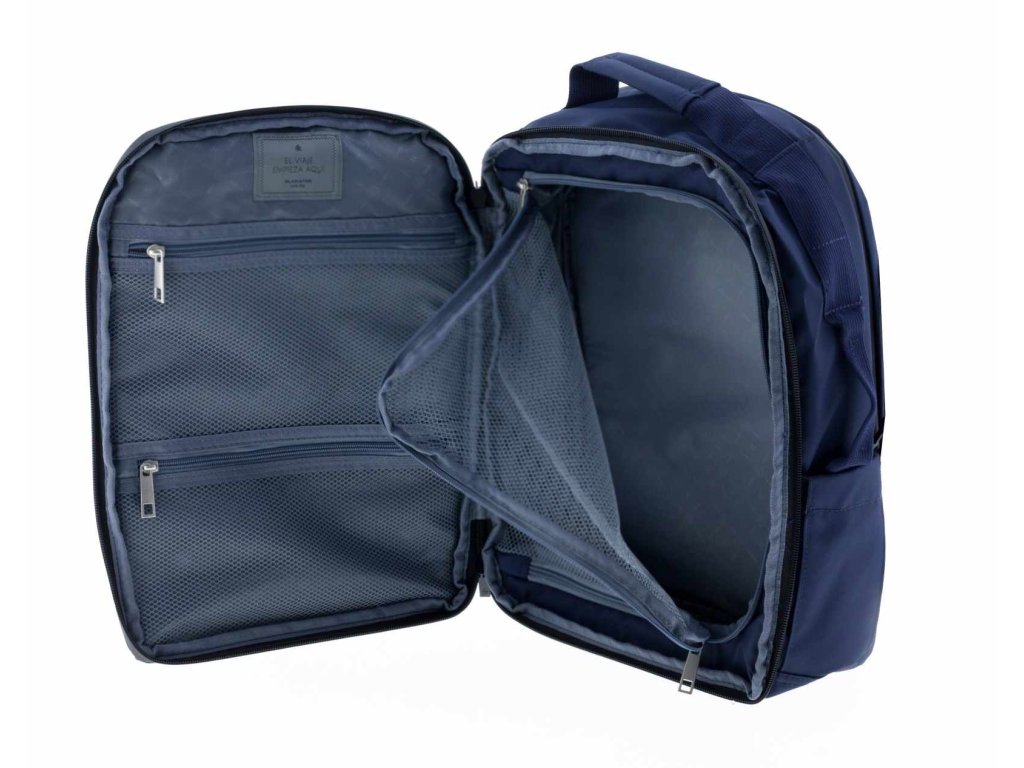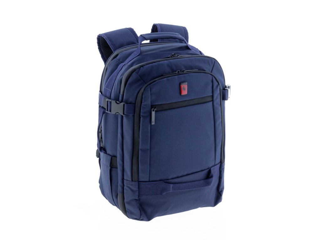 Moderný batoh španielskej značky Gladiator série Polar v tmavo modrej farbe . Tento batoh v yhovuje parametrom nízkonákladovej leteckej spoločnosti Wizzair a Vueling.