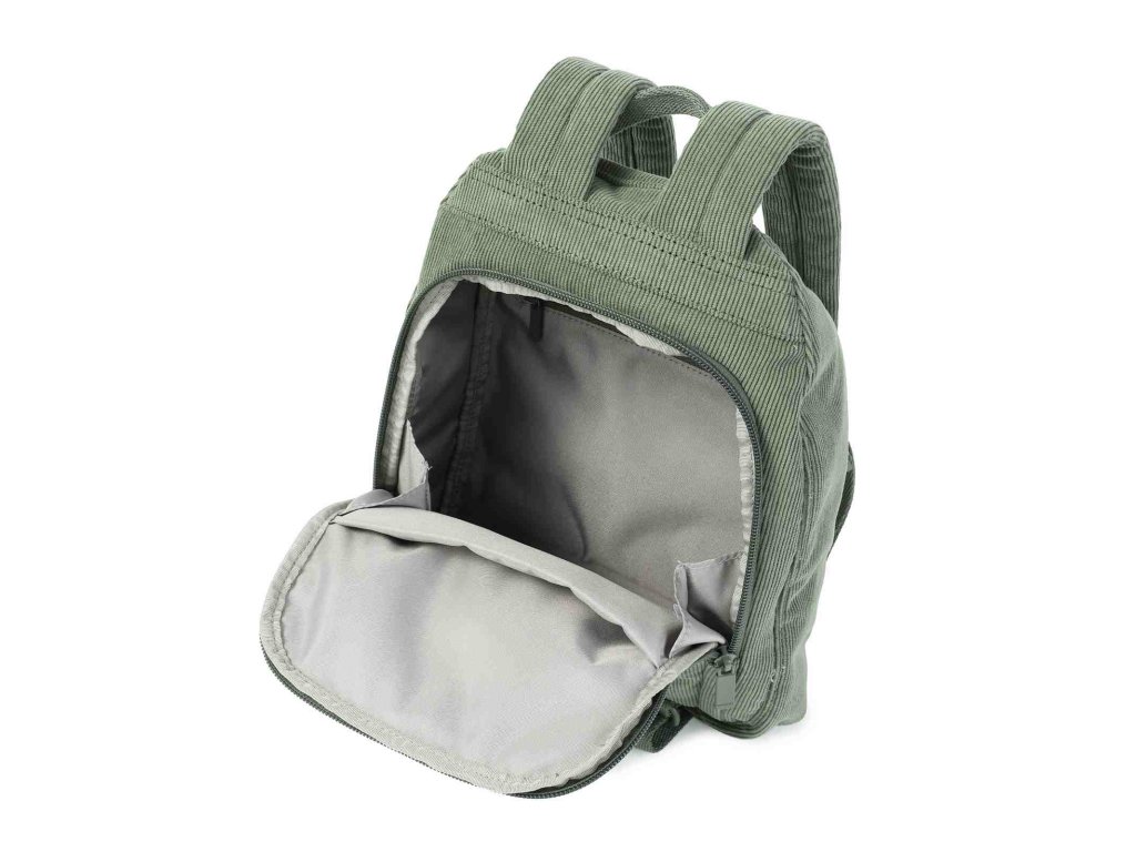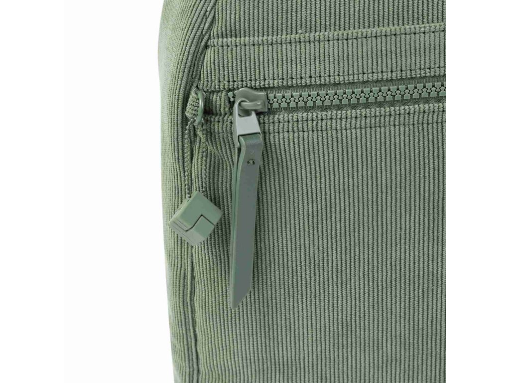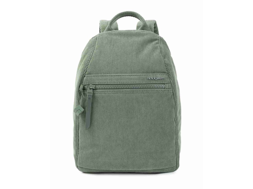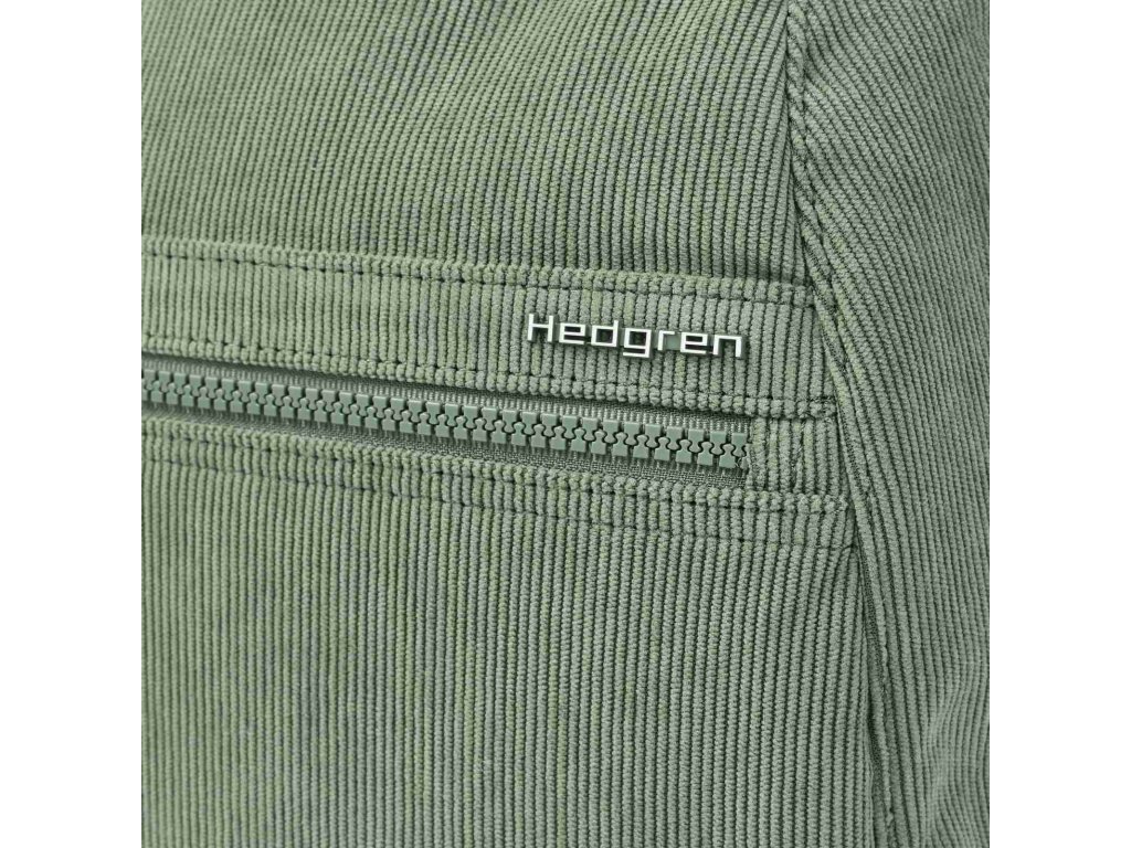 Batoh dámsky Hedgren Inner city v zelenej farbe (podľa výrobcu corduroy duck green farbe) s jemnými prúžkami (mančester) vhodný pre denné nosenie namiesto kabelky, aby vás nebolela chrbát.