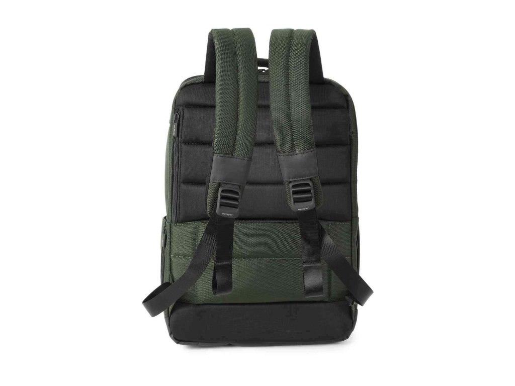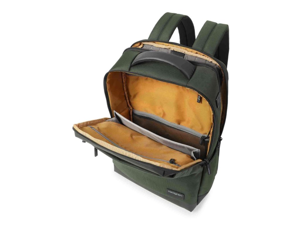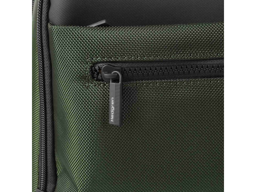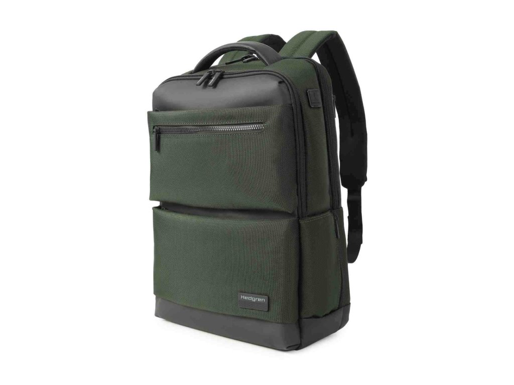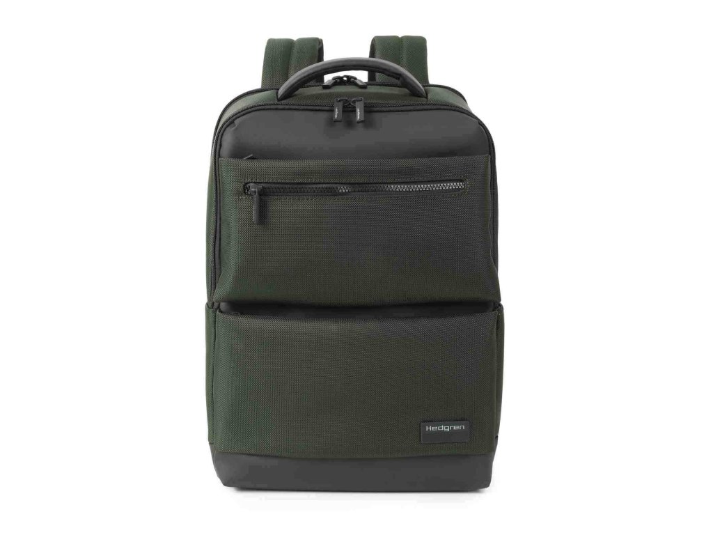Batoh športového vzhľadu Hedgren Next v kombinácii khaki a šedej farby pre mužov na denné nosenie do práce alebo na cestovanie.