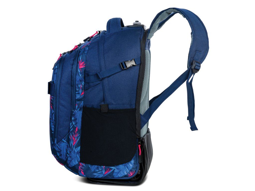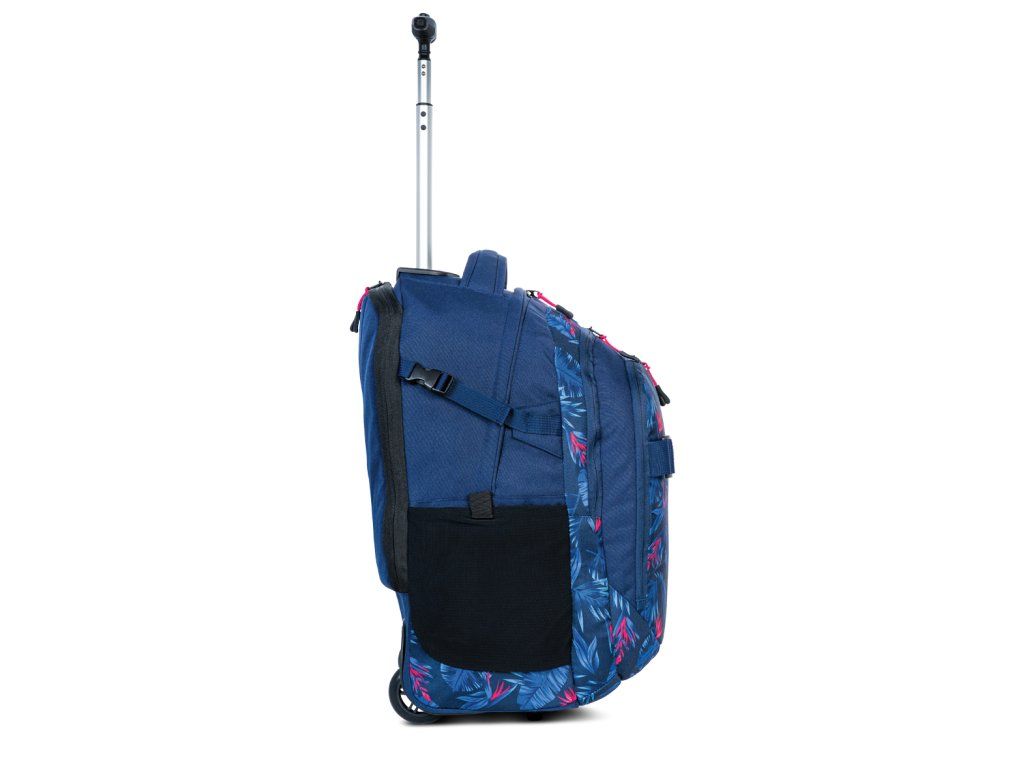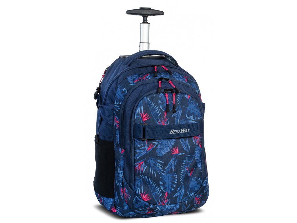 Textilné batoh na kolieskach nemeckej značky Bestway v modrej farbe s kvetinovým vzorom a vreckom na notebook, je vhodný pre cestovanie alebo do školy. Okrem dvoch veľkých priehradiek na zložky alebo organizéry a predného priestoru so zipsom a praktického organizéra pre rýchly prístup k cennostiam má tento batoh aj samostatný oddiel na notebook so zipsom. Polstrovaná chrbát so systémom Airflow a zosilnené, individuálne nastaviteľné ramenné popruhy sľubujú ergonomické a pohodlné nosenie.