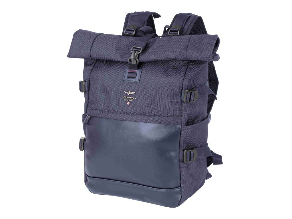 Mestský elegantno-športový batoh s rolovacím zatváraním od prestížnej značky Aeronautica Militare série Typhoon v modrej farbe. Batoh Aeronautica Militare Typhoon je ideálny parťák pre každodennú prevádzku aj kratšie cesty, kde chceš mať veci prehľadne zrovnané a zároveň v bezpečí. Vďaka roll-up uzatváraniu si ľahko upravíš objem podľa aktuálnej potreby – ráno prázdnejšie, popoludní pokojne napchatý nákupom alebo vecami do fitka. Dizajn vychádza z leteckého štýlu značky Aeronautica Militare, takže pôsobí moderne, čisto a trochu „vojensky“ – ale stále dosť civilne na bežné nosenie do práce alebo do mesta. Kvalitný materiál zvládne každodennú záťaž a len tak sa neopozerá. Vnútri nájdeš prakticky riešený priestor na notebook, dokumenty aj drobnosti, ktoré nechceš loviť po dne. Pohodlné ramenné popruhy a pevná konštrukcia zaistia, že sa batoh dobre nosí aj pri plnšom naložení.