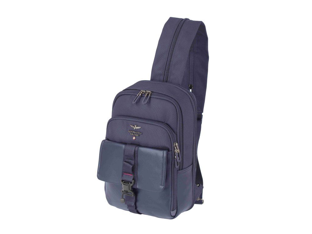 Batoh sling v modrej farbe talianskej značky Aeronautica Militare série Typhoon. Batoh sling od Aeronautica Militare z radu Typhoon je presne ten typ kúska, ktorý si vezmeš ráno na chrbát a večer si uvedomíš, že si ho vlastne nedal dole. A to je dobre. Kompaktný, ale múdro riešený – ideálny na mesto, cestovanie alebo situácia, kedy chceš mať voľné ruky a pritom všetky dôležité veci pri sebe. Vďaka sling konštrukcii ho jednoducho prehodíš cez rameno a počas sekundy máš prístup k obsahu, bez zbytočného odnímania. Dizajn kombinuje odolný polyester s elegantným hladkým vreckom na prednej strane, ktorá je istená popruhom s prackou. Vyzerá to dobre, ale hlavne to funguje - nič ti nikam neutečie. Hlavný priestor je uzatvárateľný na zips a doplnený o ďalšie vrecká, takže si veci udržíš prehľadne zrovnané.