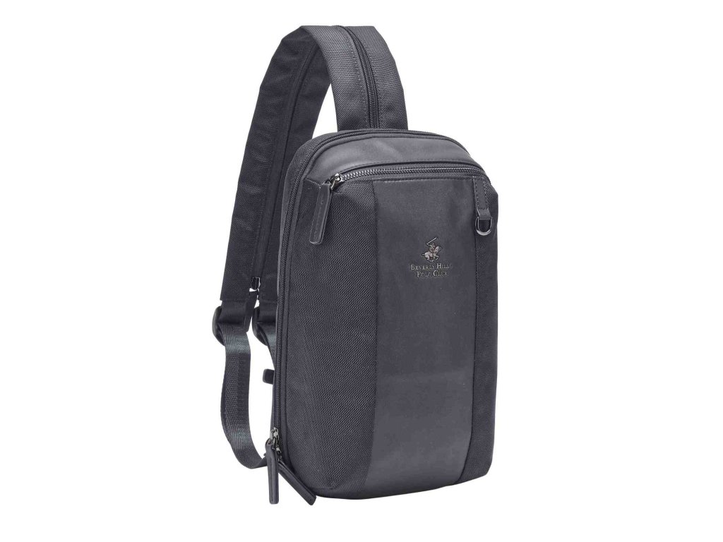 Batoh sling v obľúbenej čiernej farbe z kolekcie značky Beverly Hills Polo Club série Boston. Sling batoh Beverly Hills Polo Club Boston je ideálna voľba pre tých, ktorí chcú voľné ruky a prehľadne uložené veci bez zbytočnej veľkosti klasického batohu. Kompaktný tvar, čistý čierny dizajn a decentné logo BHPC vytvára univerzálny doplnok do mesta, na cestovanie aj každodenné pochôdzky. Jednokomorové usporiadanie na zips ponúka dostatok priestoru na mobil, peňaženku, doklady, powerbanku aj menšie tablet. Predné vrecko na zips umožňuje rýchly prístup k veciam, ktoré potrebujete mať hneď po ruke. Vďaka ergonomickému, nastaviteľnému popruhu je možné batoh pohodlne nosiť cez hrudník alebo chrbát – presne tak, ako vám to vyhovuje. Odolný materiál zvládne každodennú prevádzku bez rečí. Toto je praktický mestský parťák, ktorý neprekáža, ale funguje.