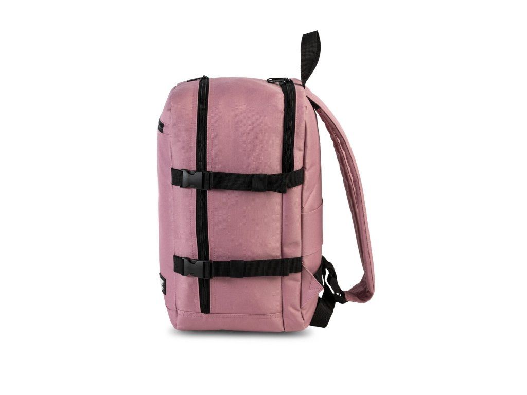 Cestovný multifunkčný textilný batoh nemeckej značky Southwest Bound v ružovej farbe as polstrovaným zadným vreckom na 13" notebook . Túto palubnú batožinu si môžete vziať so sebou do lietadla, ako vyžaduje spoločnosť Ryanair. Má rozmery, ktoré akceptuje väčšina leteckých spoločností.
