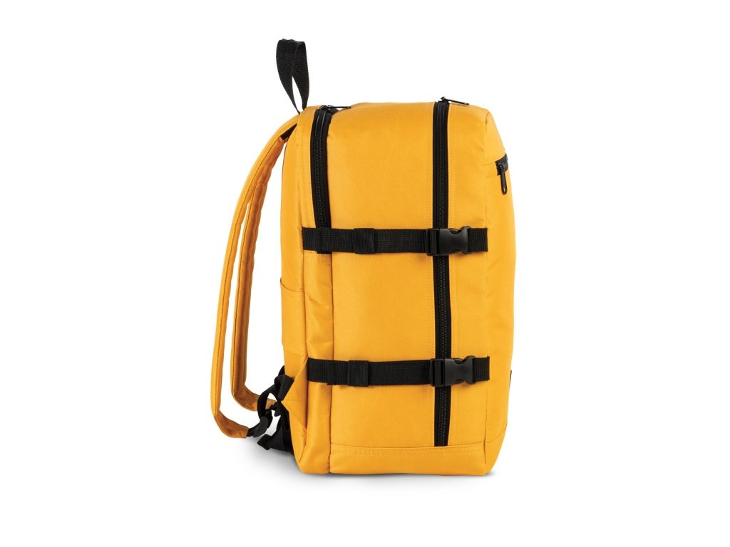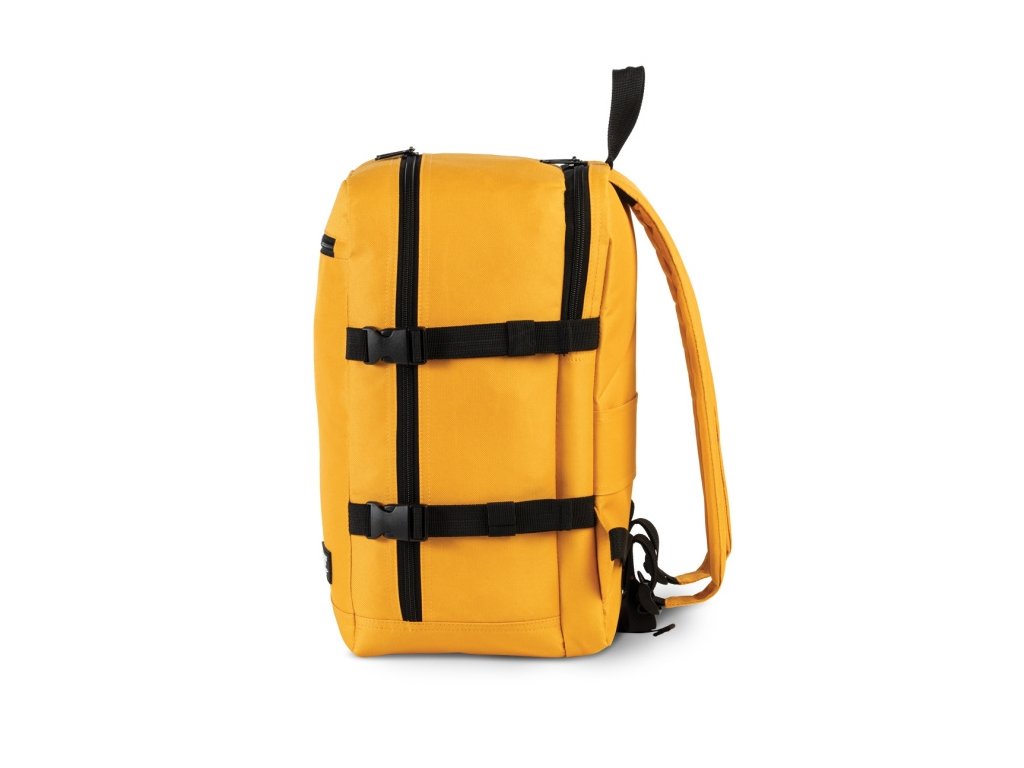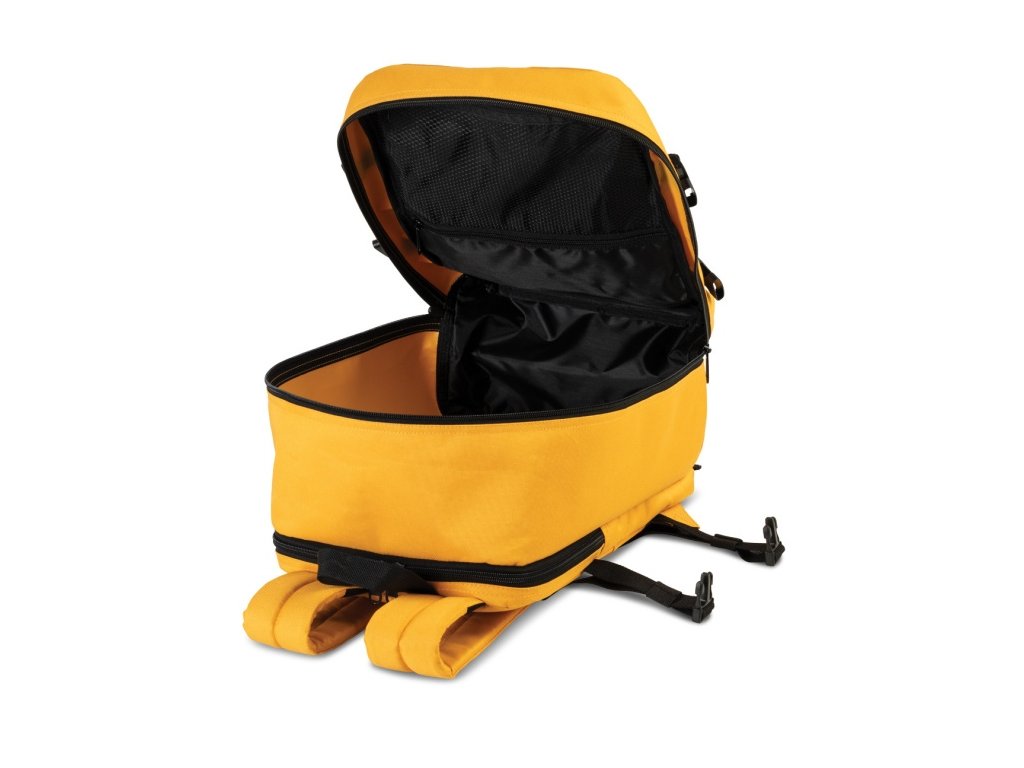 Cestovný multifunkčný textilný batoh nemeckej značky Southwest Bound v okrovej farbe as polstrovaným zadným vreckom na 13" notebook . Túto palubnú batožinu si môžete vziať so sebou do lietadla, ako vyžaduje spoločnosť Ryanair. Má rozmery, ktoré akceptuje väčšina leteckých spoločností.