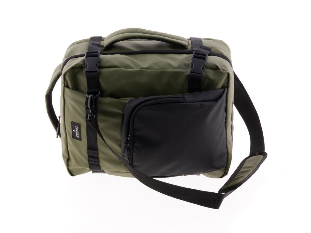 Textilný batoh-taška španielskej značky Vogart série Nitro v tmavšej zelenej farbe. Táto kolekcia je Vyrobená z odolného materiálu Polyesteru reversed. Univerzálne kúsky ideálne pre všetky typy cestovania. Túto palubnú batožinu si môžete vziať so sebou do lietadla, ako to vyžaduje spoločnosť Ryanair a Wizz air.