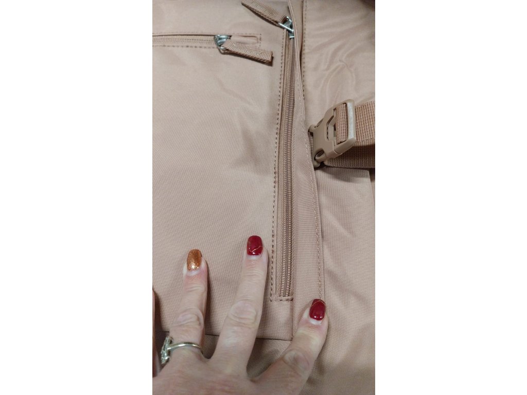 - Skryté vrecko na zips na zadnej strane batohu.