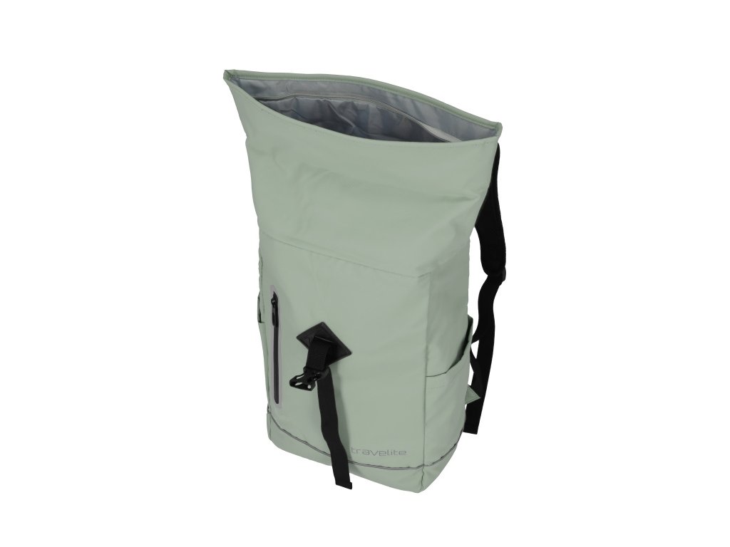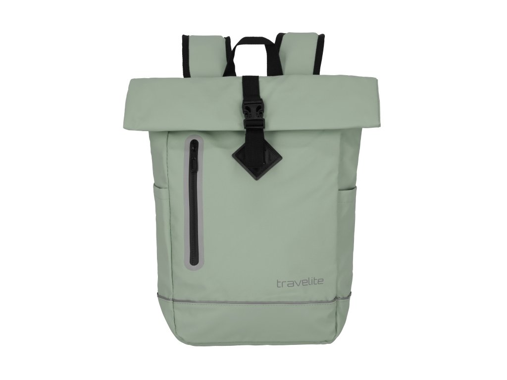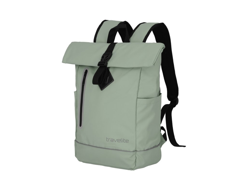 Trendy batoh nemeckej značky Travelite vo svetlo zelenej farbe s rolovacím zatváraním v pogumovanom prevedení je vhodný na krátke cesty alebo do práce.