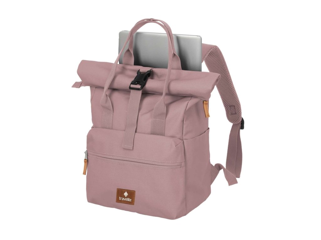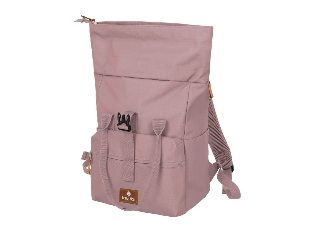 Trendy batoh nemeckej značky Travelite v ružovej farbe s rolovacím zatváraním línie Basics Short Handle Rollup. Ľahký všestranný rolovec a moderne riešený batoh v jednoduchom štýle poskytne ochranu vašich vecí, či už idete do mesta alebo do prírody. Je možné ho nasadiť na rukoväť cestovného kufra.