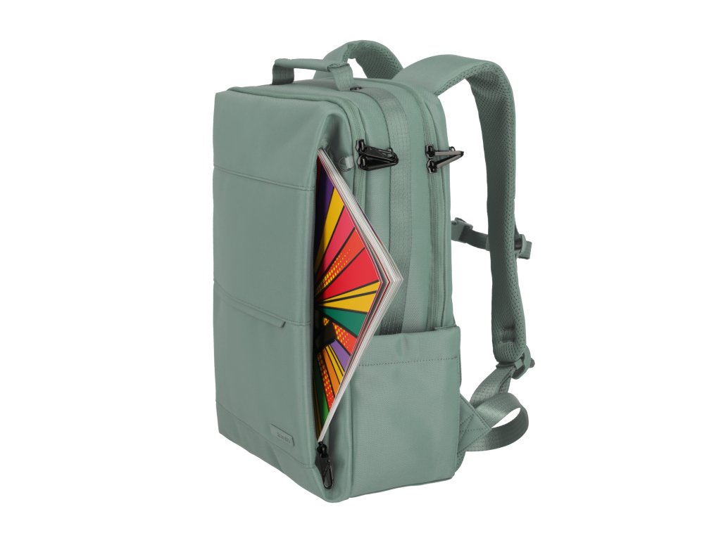 Textilný multifunkčný batoh veľkosti M nemeckej značky Travelite série Workfloow prevedení v atraktívnej šalviovej farbe . Moderný dizajn sa snúbi s precíznosťou v spracovaní a kvalitnými úžitkovými materiálmi. Tento batoh bude vašim spoločníkom do práce, do mesta, či na obchodnú schôdzku. Výrobca nezabudol ani praktickú polstrovanú priehradku na laptop do 15,6 palcov, batoh má na ochranu vašich vecí bezpečnostné zipsy, ktoré idú pripnúť k integrovaným krúžkom.