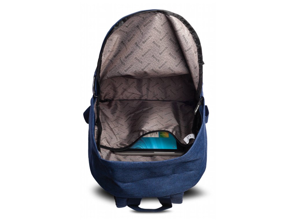 Textilný dámsky moderný batôžtek anglickej značky Bench v tmavo modrej farbe s kvalitnými zipsami a polstrovaným dnom. Atraktívny batôžtek z kvalitného materiálu je vhodný skôr na kratšie cesty, výlety, do mesta alebo na cestu do zamestnania.