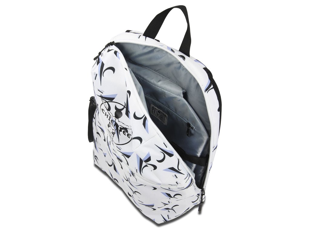 Batoh zo série SURF'N'TURF nemeckej značky Chiemsee v klasickej bielo čiernej kombinácii tvorí dizajnový základ sa vzory inšpirované windsurfingom. Modely v tejto pútavej kolekcii inšpirujú svojím individuálnym vzhľadom, ktorý vás tiež presvedčí čoby spoľahlivého spoločníka pre váš dynamický životný štýl. Tento väčší moderný a spoľahlivý batoh Vám poskytne patričný komfort. Použitý základný materiál pozostáva z recyklovaného PET, je bez PVC, UV odolný, veľmi ľahký a tiež vodoodpudivý, silné zipsy a priestrannosť Vám zaručí, že všetko, čo si vezmete so sebou, bude v bezpečí.