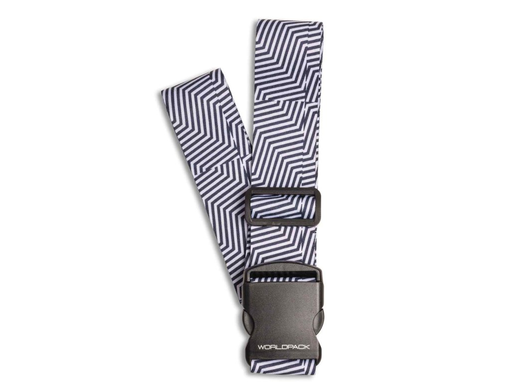 Popruh na cestovný kufor značky Fabrizio v kombinácii čiernej a bielej farby. Popruh lepšie chráni obsah vášho kufra. Je dostatočne dlhý a prispôsobivý. Slúži tiež ako identifikátor Vašej batožiny.