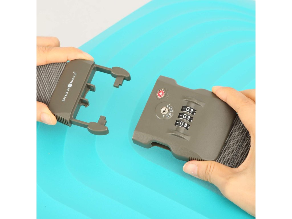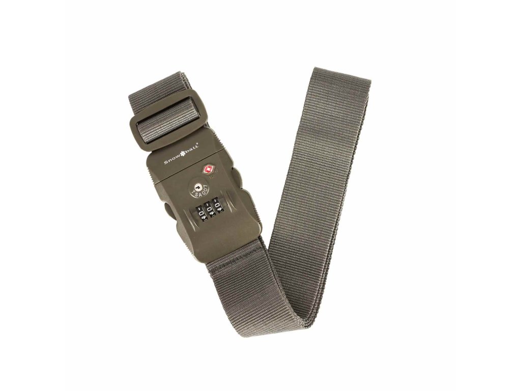 Zaisťovací popruh na batožinu francúzskej značky Snowball s kombinačným zámkom TSA v šedej farbe.