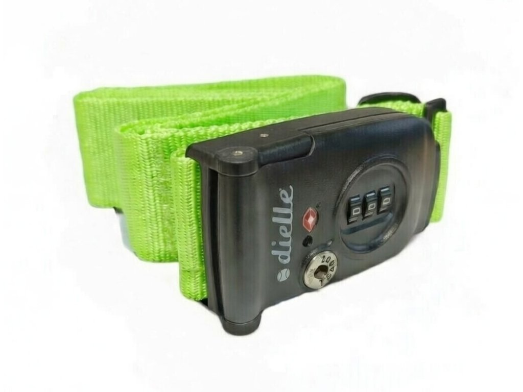 Zaisťovací popruh na batožinu talianskej značky dielle v modrej farbe s kombinačným zámkom TSA.