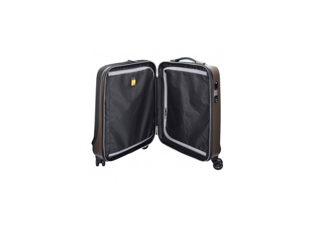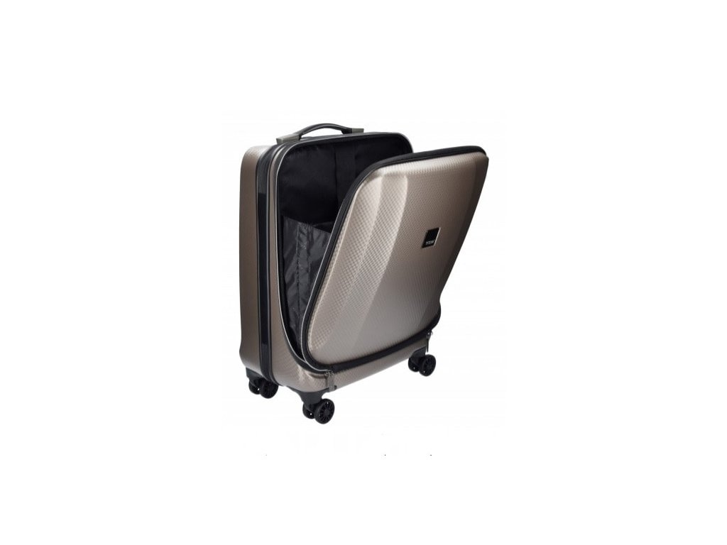 Luxusný plastový kufor nemeckej značky Titan zo série Xenon Deluxe, 55 cm, vo farbe šampanského so štruktúrovaným povrchom.