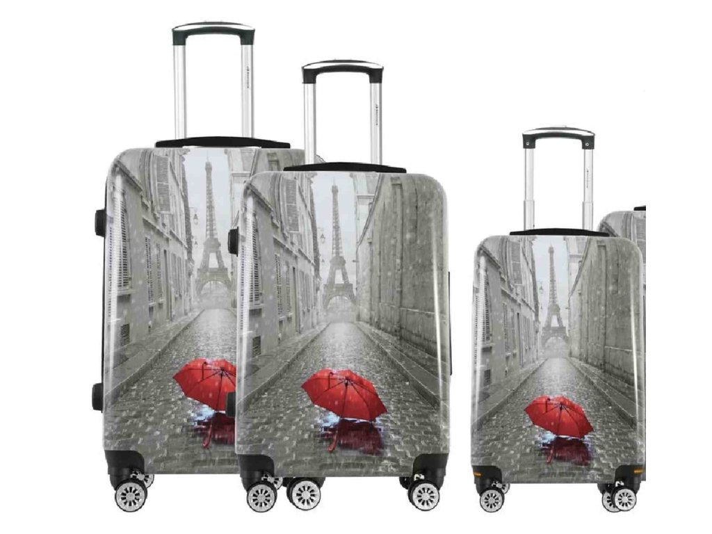 Set 3 ks cestovných kufrov francúzskej značky Madisson v šedej farbe s motívom Paríža .