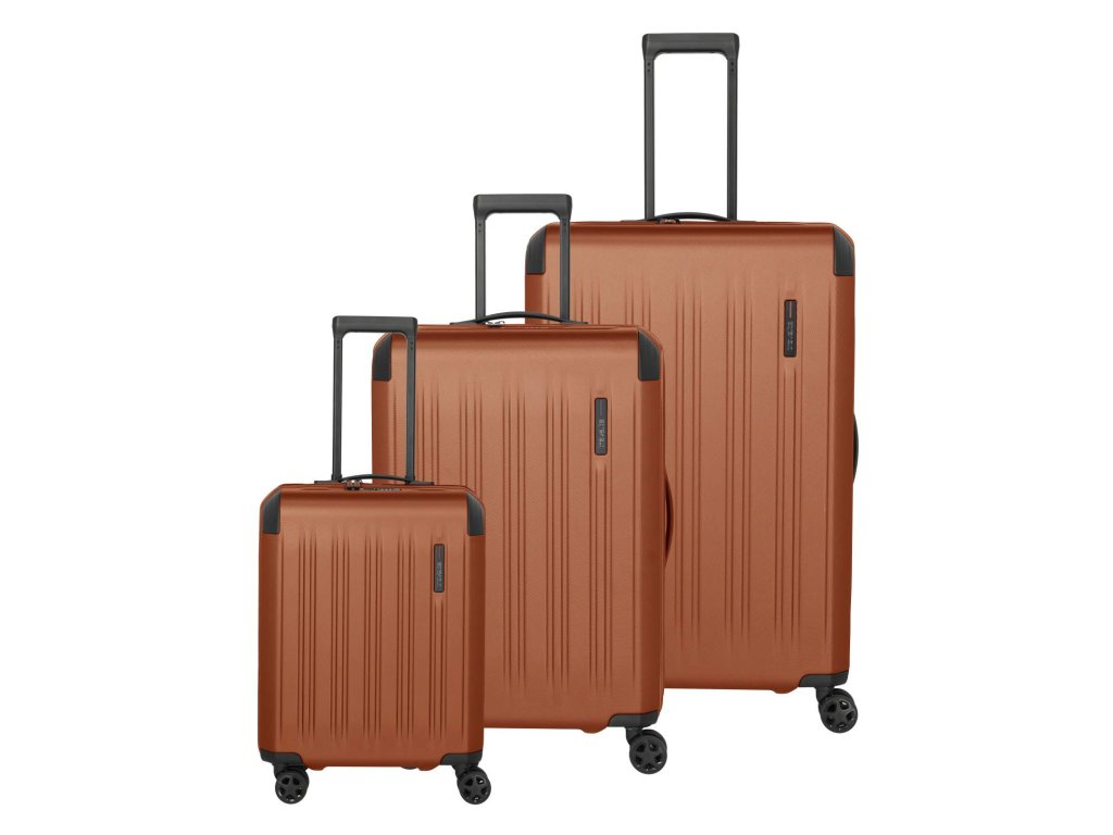 Set 3 ks plastových cestovných kufrov nemeckej značky Travelite v zaujímavej medenej farbe línie Dynamiic. Či už na súkromné alebo pracovné cesty. Či už na krátky výlet alebo na cestovanie v minimalistickom štýle - tento kufre sú všetko, čo potrebujete. Napriek kompaktným rozmerom ponúka množstvo miesta a vďaka dvom vnútorným prepážkam a popruhu pripevnenému ku dnu zároveň zaisťuje prehľad a poriadok. Zosilnené rohy a integrovaný TSA zámok poskytujú dodatočnú ochranu. Funkčnosť týchto kufrov zaujme aj vo vnútri. Upevňovacie popruhy a zipsy zaistia, že všetko zostane počas cestovania na svojom mieste a dobre usporiadané.