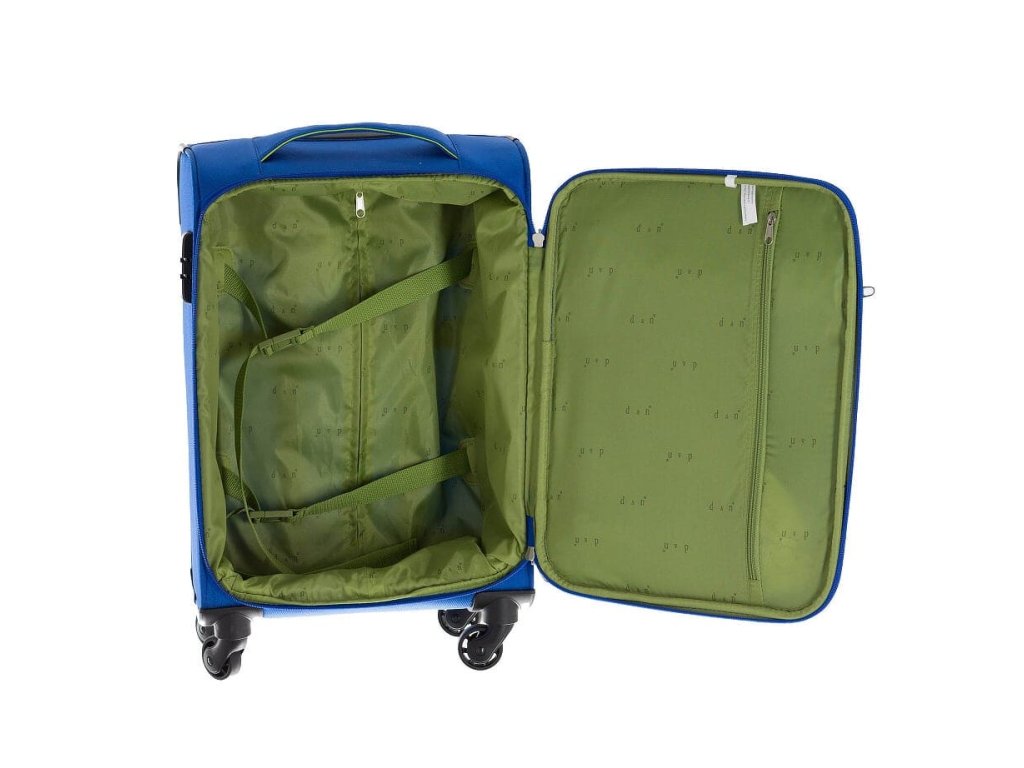 Textilný odľahčený cestovný kufor, 55 cm, v modrej farbe z kolekcie nemeckej značky D&N na 4 otočných kolieskach.