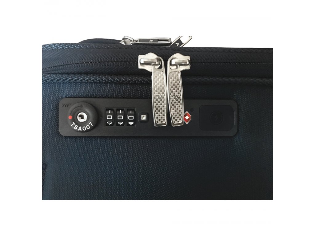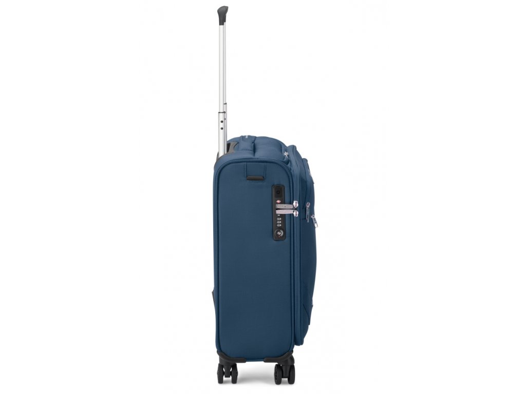 Textilný cestovný kufor so štyrmi kolieskami, horným zipsovým vreckom s USB portom talianskej značky Roncato v atraktívnej modrej farbe. Kufor je vyrobený z veľmi kvalitného materiálu-nylonu, ktorý je odolný proti oderu a zabraňuje tak poškodeniu kufra. Kolieska sú tiché, otočné o 360 stupňov a spoľahlivé na akomkoľvek povrchu. p>