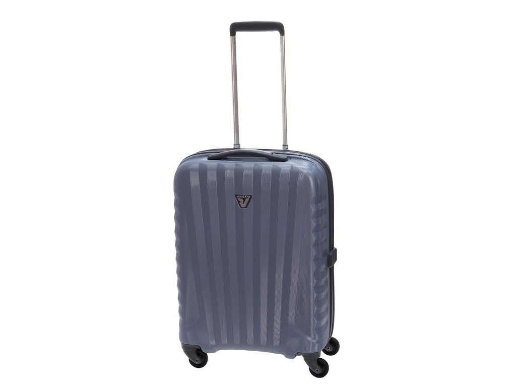 Luxusný elegantný ultraľahký plastový cestovný kufor, 55 cm, s prelisovaním v modrej arktickej farbe talianskej značky Roncato zo série Uno zips ZSL.