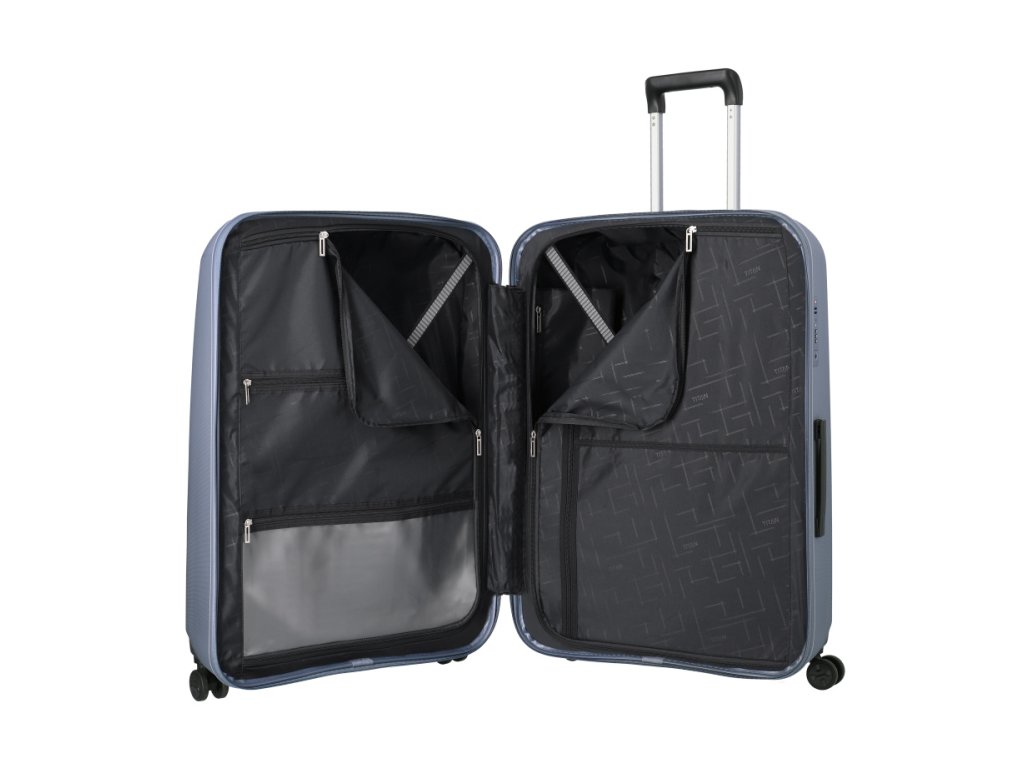 Cestovný škrupinový kufor nemeckej značky Titan v atraktívnej modrosivej farbe. Tento moderný a štýlový kufor je vyrobený z materiálu zvaný polykarbonát, ktorý sa vyznačuje vysokou odolnosťou voči oteru i maximálnou pevnosťou pri zachovanej pružnosti a v neposlednom rade aj extra ľahkosťou. Je vybavený štyrmi nehlučnýmii, otočnými dvojkolieskami. p>