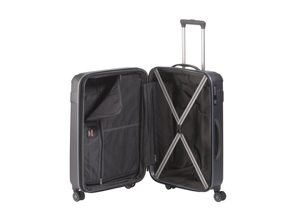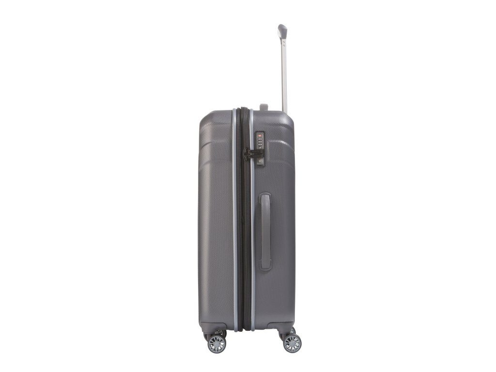 Moderný plastový kufor z kolekcie nemeckej značky Travelite, 64 cm, v antracitovej farbe série Vector prináša kolekciu kufrov vyrobených z ABS plastového materiálu, ktorý je odolný voči mechanickému poškodeniu. Vydajte sa na cesty bezpečne a spoľahlivo.