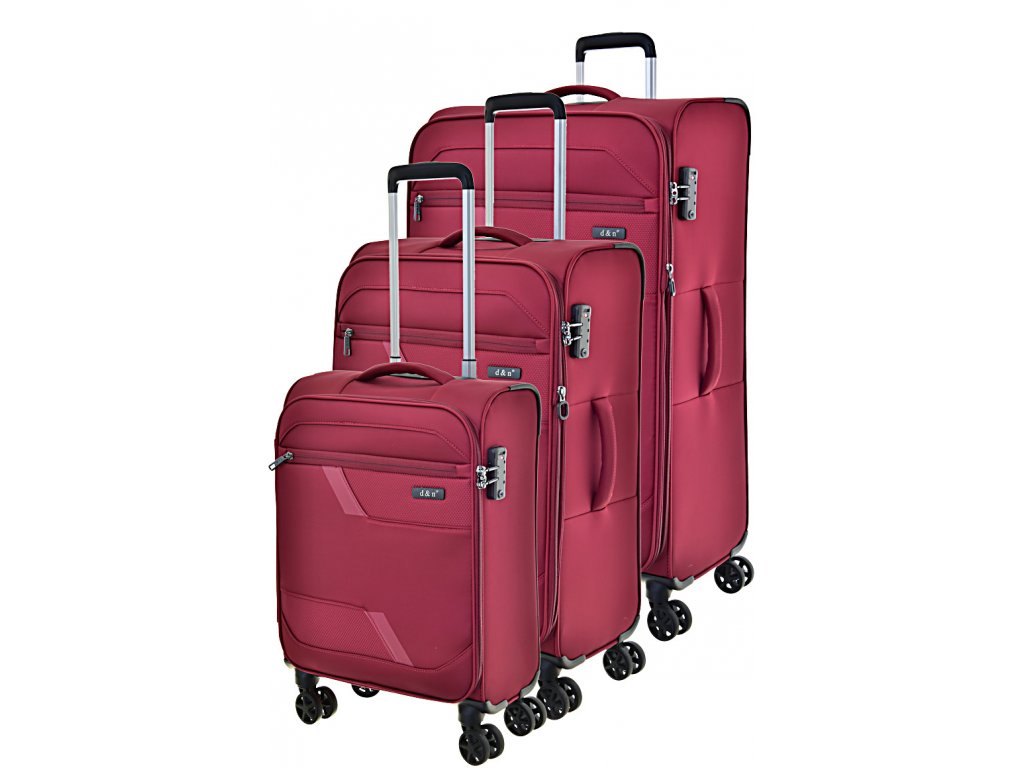 Set 3 ks textilných cestovných kufrov značky D&N v atraktívnej červenej farbe. Moderný vzhľad, kvalitné spracovanie, použité materiály, spoľahlivosť a funkčnosť ocenia určite aj náročnejší zákazníci, ktorí dávajú prednosť textilným kufrom pred plastovými. Kúpte si túto štýlovú trojdielnu sadu kufrov a spríjemnite si svoje cesty. p>
