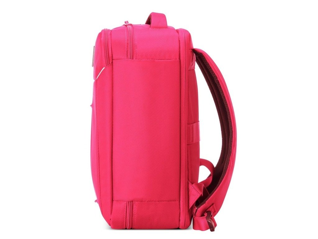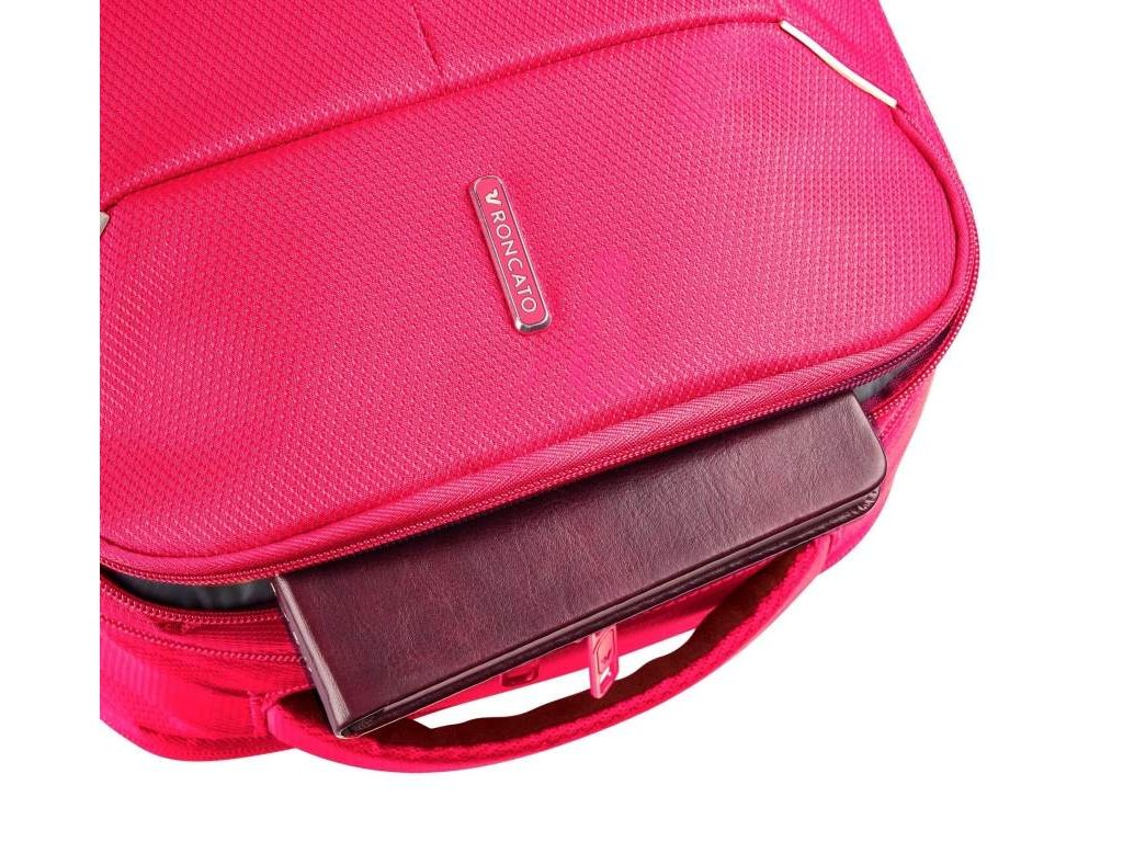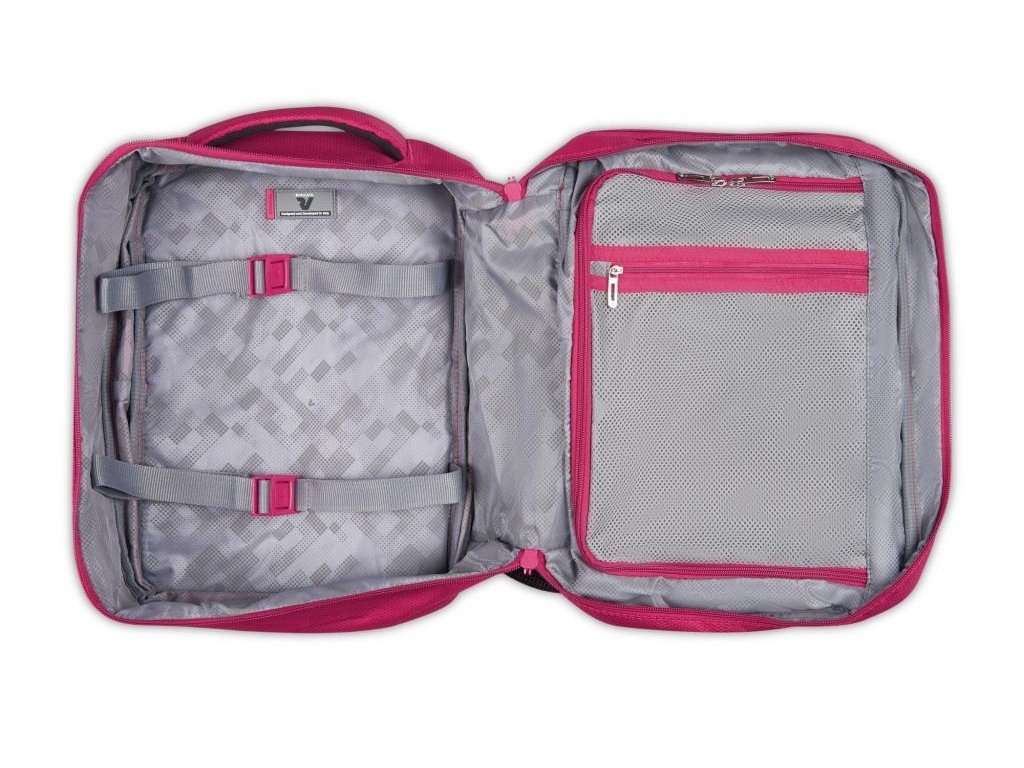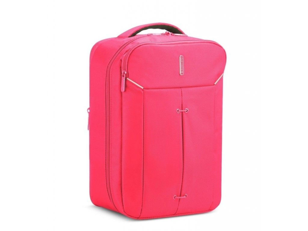 Cestovný multifunkčný textilný batoh talianskej značky Roncato v ružovej (purpurovej) farbe série IRONIK. Túto batožinu si môžete vziať so sebou do lietadla, ako to vyžaduje spoločnosť Ryanair. Má rozmery, ktoré akceptuje väčšina leteckých spoločností.