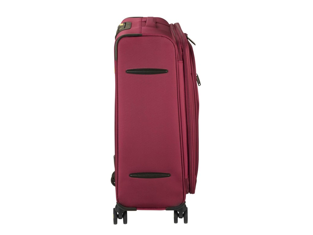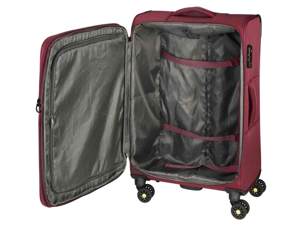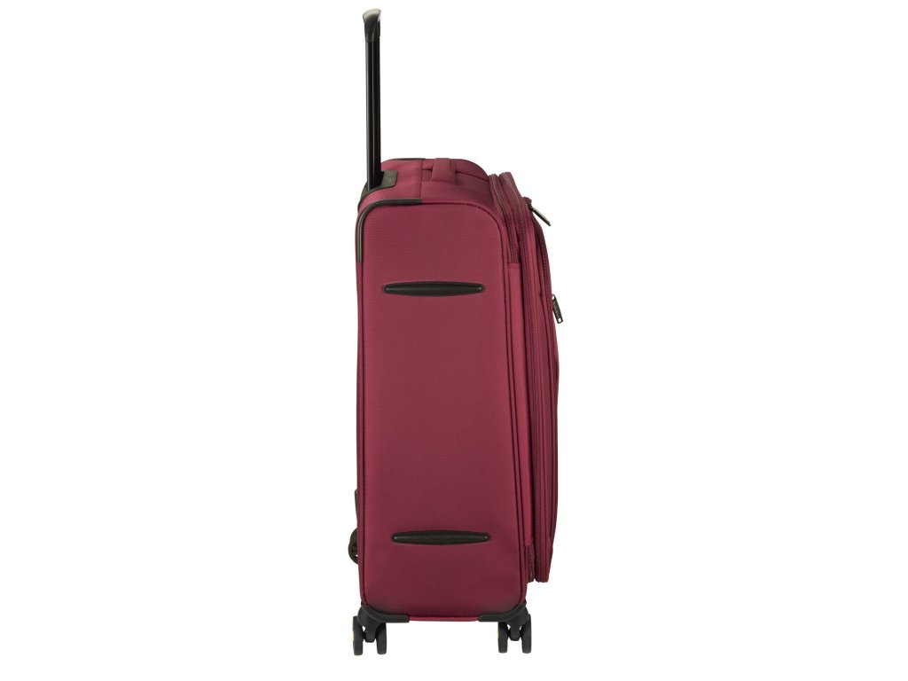 Textilný odľahčený cestovný kufor nemeckej značky D&N vo vínovej farbe. Tento kufor je veľmi ľahký a to hlavne preto, že je vyrobený z odolnej textílie. Jeho ľahký prevoz a manipuláciu s ním zaisťujú 4 kolieska a výsuvná rukoväť.