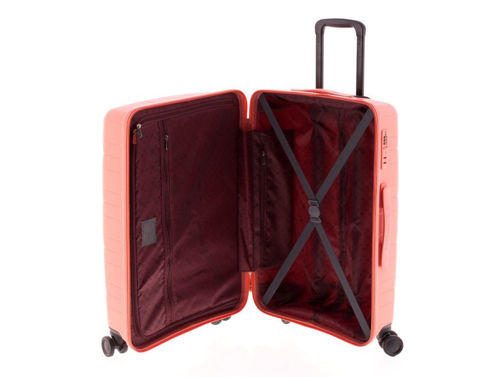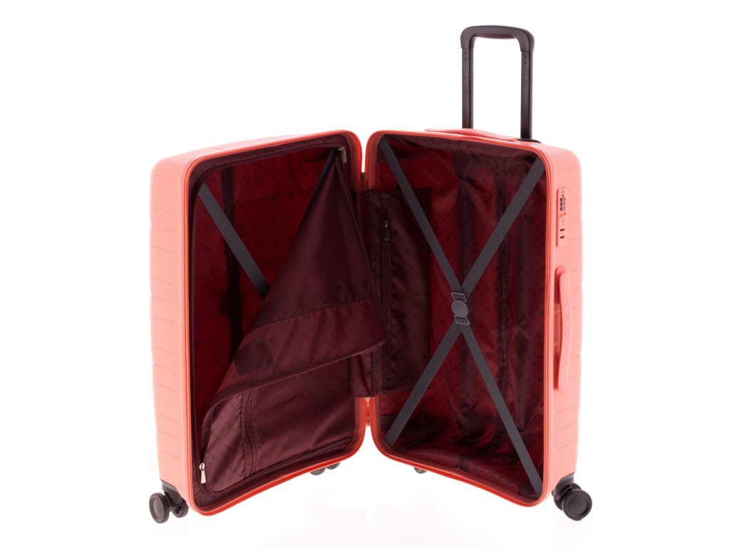 Moderný plastový kufor 64 cm španielskej značky Gladiator línia Magic s prelismi v broskyňovej (podľa výrobcu peach pink) farbe. Línia Magic je čistá fantasy. Je vyrobená z ľahkého a odolného polypropylénu a je určená pre tých, ktorí chcú vyniknúť a cestovať štýlovo. Jeho odvážny a originálny dizajn evokuje ilúziu mágie s dynamickými líniami a žiarivými farbami, ktoré akoby ožili v akomkoľvek prostredí. S Magic je každý detail vytvorený tak, aby ohromil, s interiérom navrhnutým tak, aby maximalizoval priestor takmer magicky. Mágia vás zavedie ďalej, než ste si kedy predstavovali, a premení každú cestu na veľkolepý zážitok.