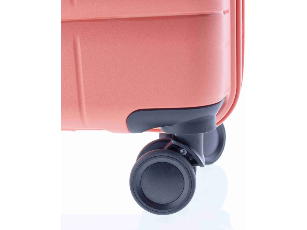 Moderný plastový kufor 55 cm španielskej značky Gladiator línia Magic s prelismi v broskyňovej (podľa výrobcu peach pink) farbe. Línia Magic je čistá fantasy. Je vyrobená z ľahkého a odolného polypropylénu a je určená pre tých, ktorí chcú vyniknúť a cestovať štýlovo. Jeho odvážny a originálny dizajn evokuje ilúziu mágie s dynamickými líniami a žiarivými farbami, ktoré akoby ožili v akomkoľvek prostredí. S Magic je každý detail vytvorený tak, aby ohromil, s interiérom navrhnutým tak, aby maximalizoval priestor takmer magicky. Mágia vás zavedie ďalej, než ste si kedy predstavovali, a premení každú cestu na veľkolepý zážitok.
