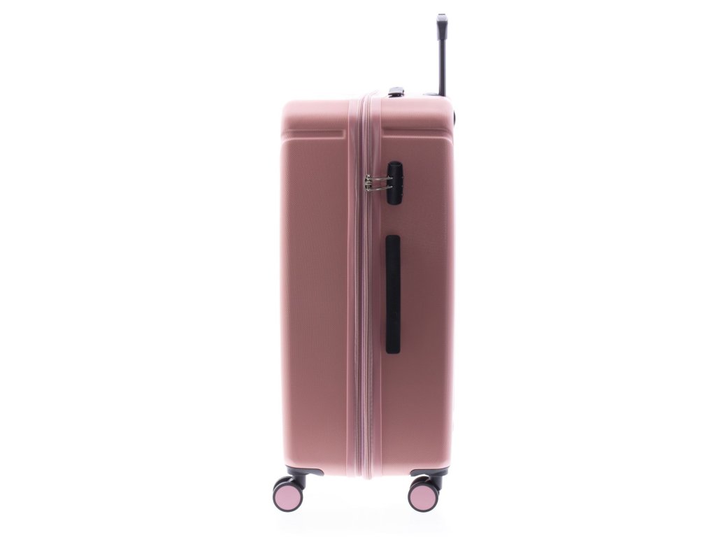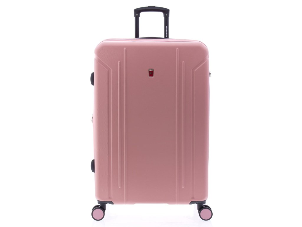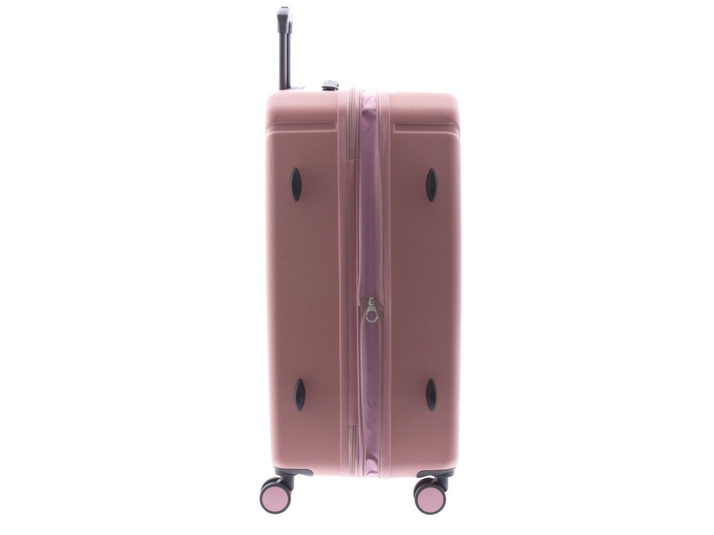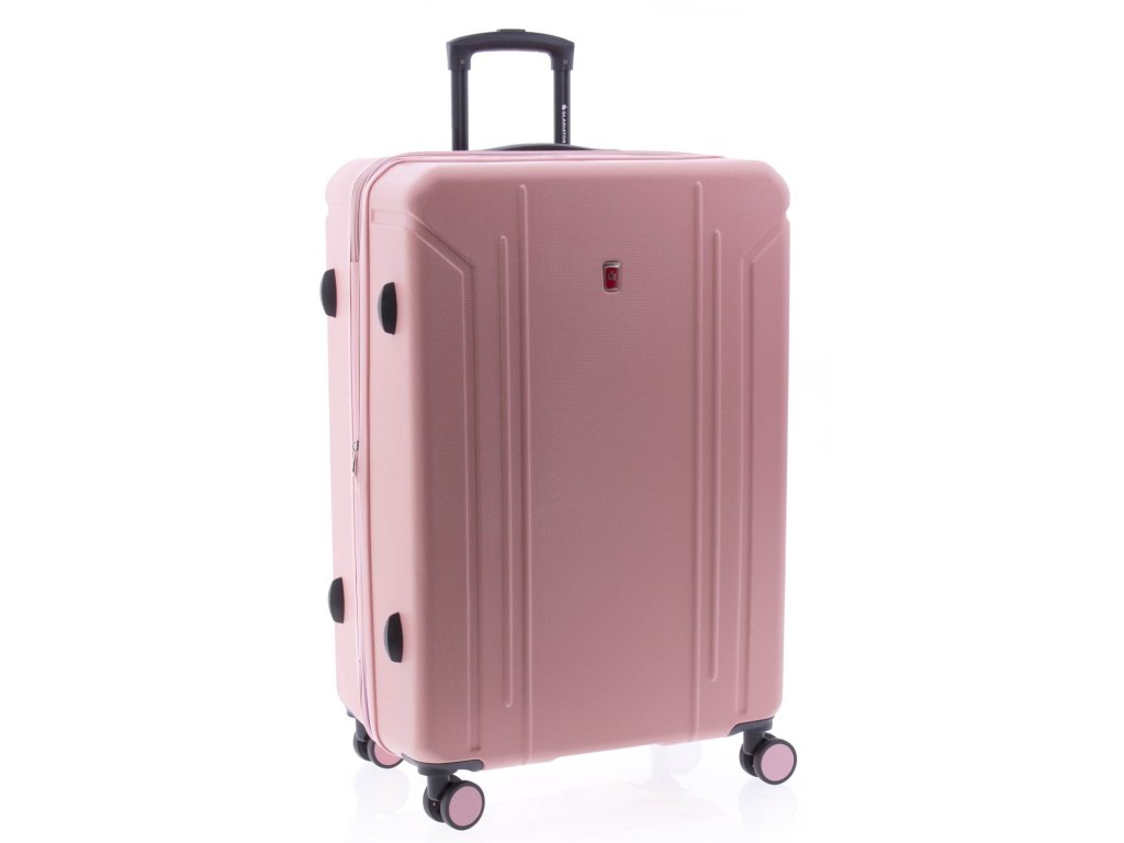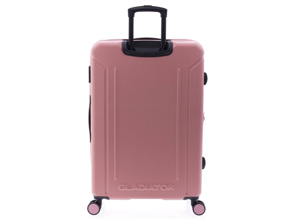 Moderný plastový kufor 77 cm španielskej značky Gladiator línia Tropical s prelismi v ružovej farbe. M oderný vzhľad, atraktívna cena a praktickosť. To sú kufre línie Tropical so štyrmi otočnými kolieskami.