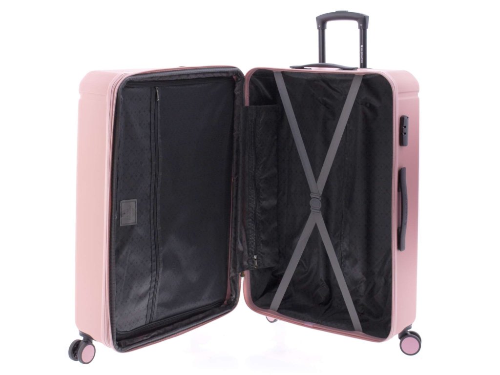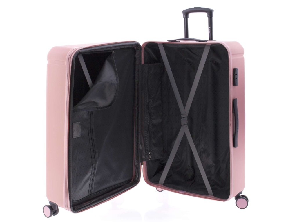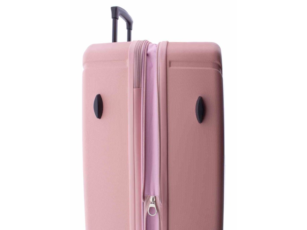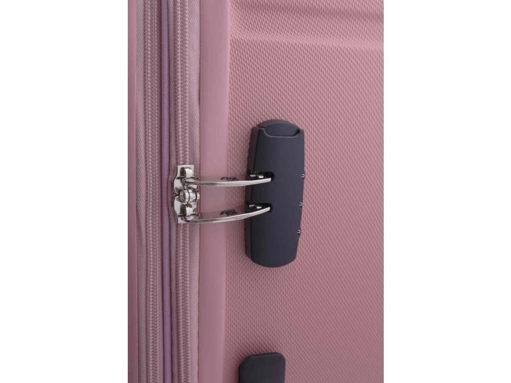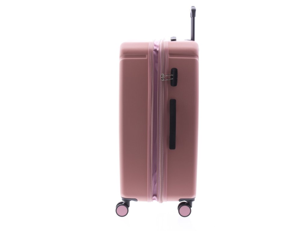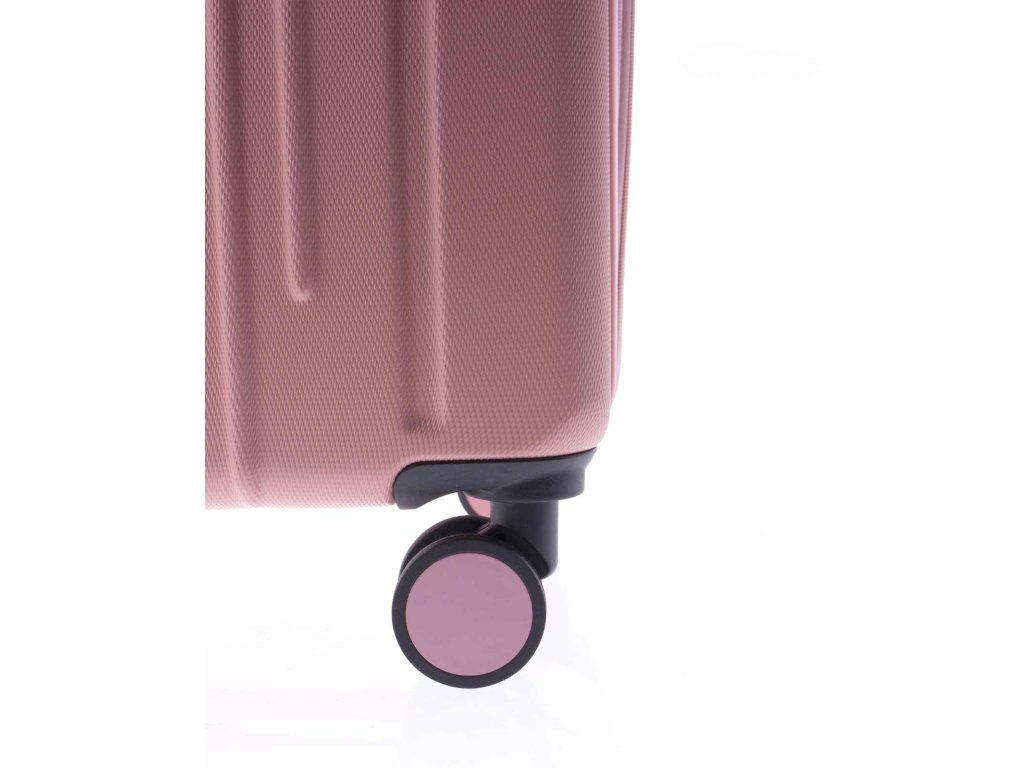 Moderný plastový kufor 77 cm španielskej značky Gladiator línia Tropical s prelismi v ružovej farbe. M oderný vzhľad, atraktívna cena a praktickosť. To sú kufre línie Tropical so štyrmi otočnými kolieskami.