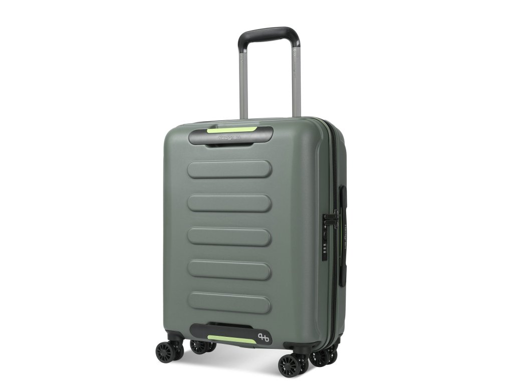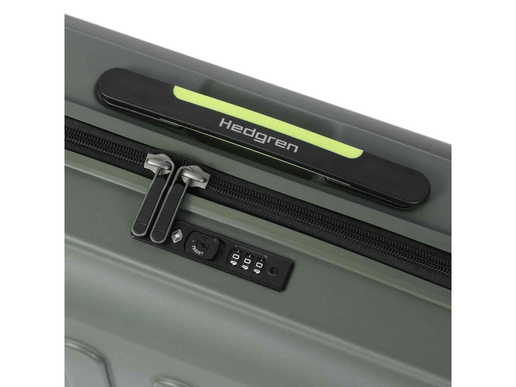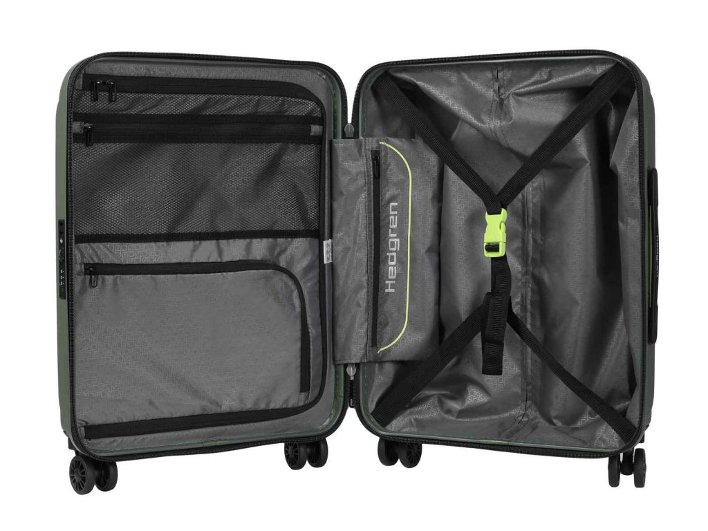 Cestovný kabínový kufor belgickej značky Hedgren Comby v olivovej farbe z polykarbonátu. Je veľmi ľahký, pevný a odolný voči poškodeniu s luxusnou výbavou.