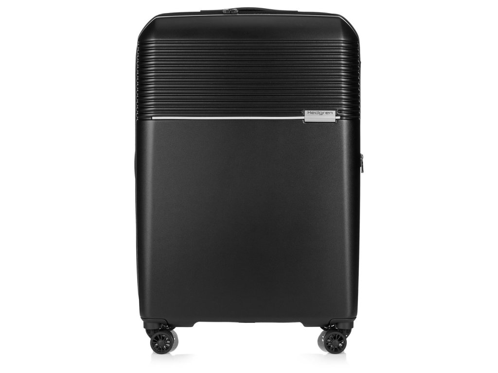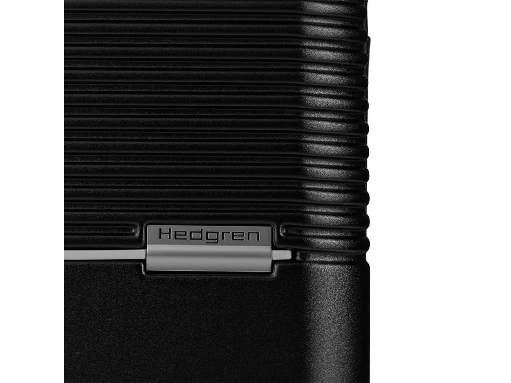 Cestovný kufor belgickej značky Hedgren Lineo veľkosti L v čiernej farbe zo 100% polykarbonátu. Je veľmi ľahký, pevný a odolný voči poškodeniu s luxusnou výbavou.