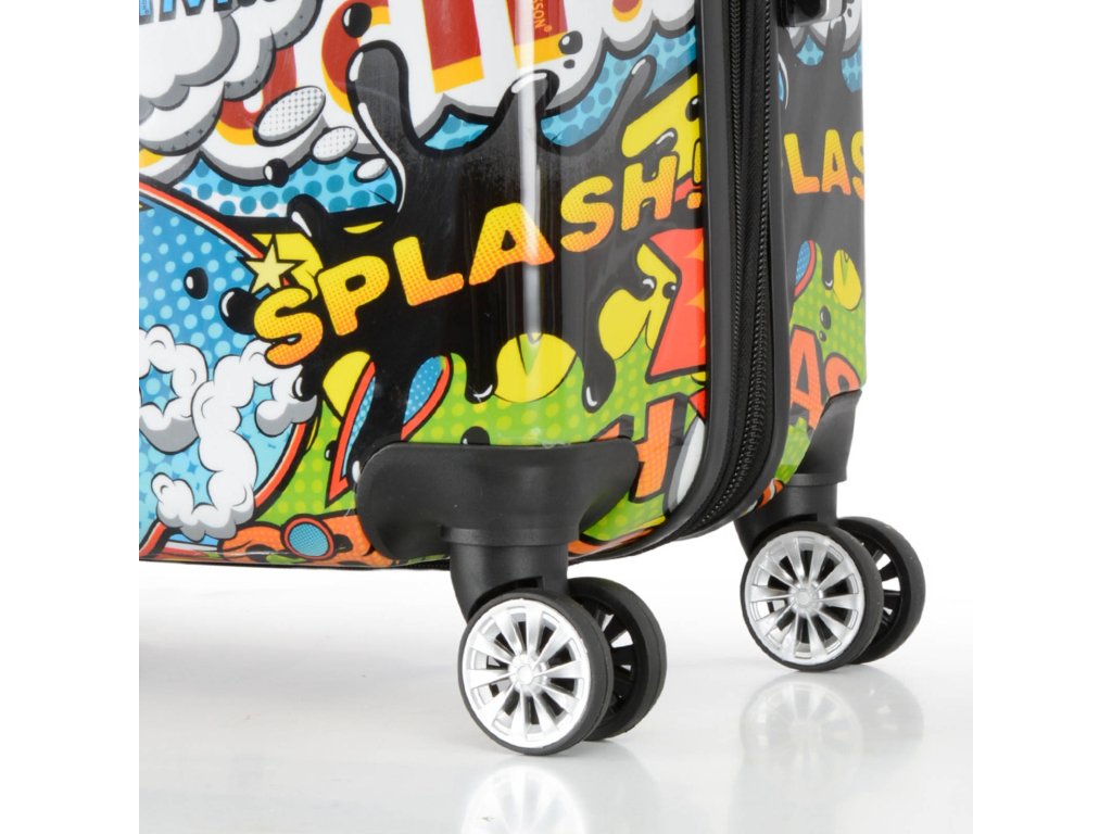 Cestovný kufor 66 cm v modernom dizajne francúzskej značky Madisson s motívom komiksových bublín . Má jedinečný vzhľad, ktorý ho odlišuje od ostatných batožín svojou neobvyklou a farebnou potlačou.